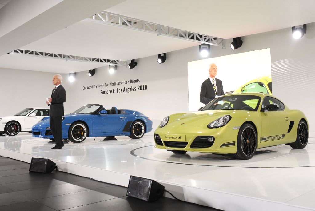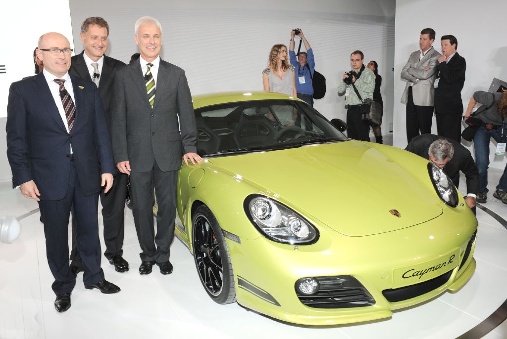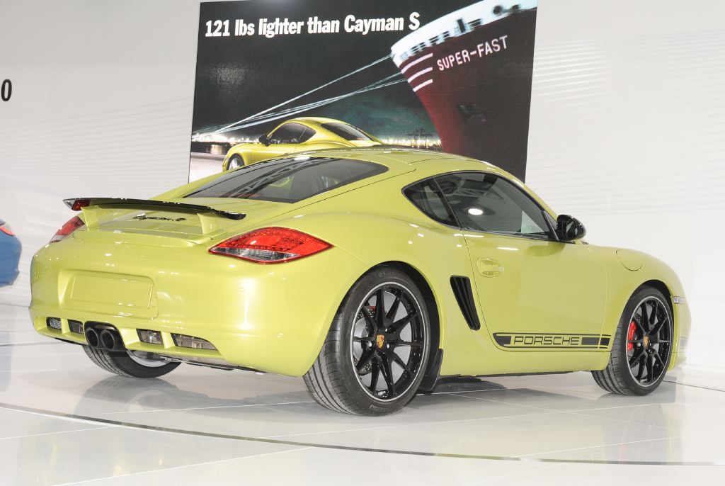 洛杉磯車展 2010 正式開鑼,Porsche 新車 Cayman R 令大家感到難以捉摸,皆因它的名字改了又改,而最終名字以 R 結尾,相信是最佳選擇。R 版以 S 版為基礎改進,更為輕巧是老賣點所在,Cayman R 足足輕了 55kg,重量為 1,295kg;車身高度降低了 20mm,馬力再大上 10 匹。改用了 3,400cc 水平對向 6 氣缸引擎的 Cayman R,馬力輸出達 330 匹,配備 6 前速手動波箱,由 0-100km 只需 5 秒。如果改用 PDK 7 前速雙離合器波箱的話,加速度可以更快,由 0-100km 只需 4.9 秒。極速方面,手波版為 282km/h,自動波版為 280km/h。暫定 2011 年 2 月推出。