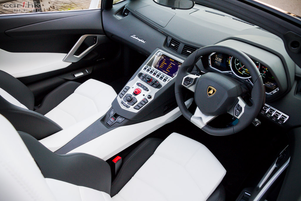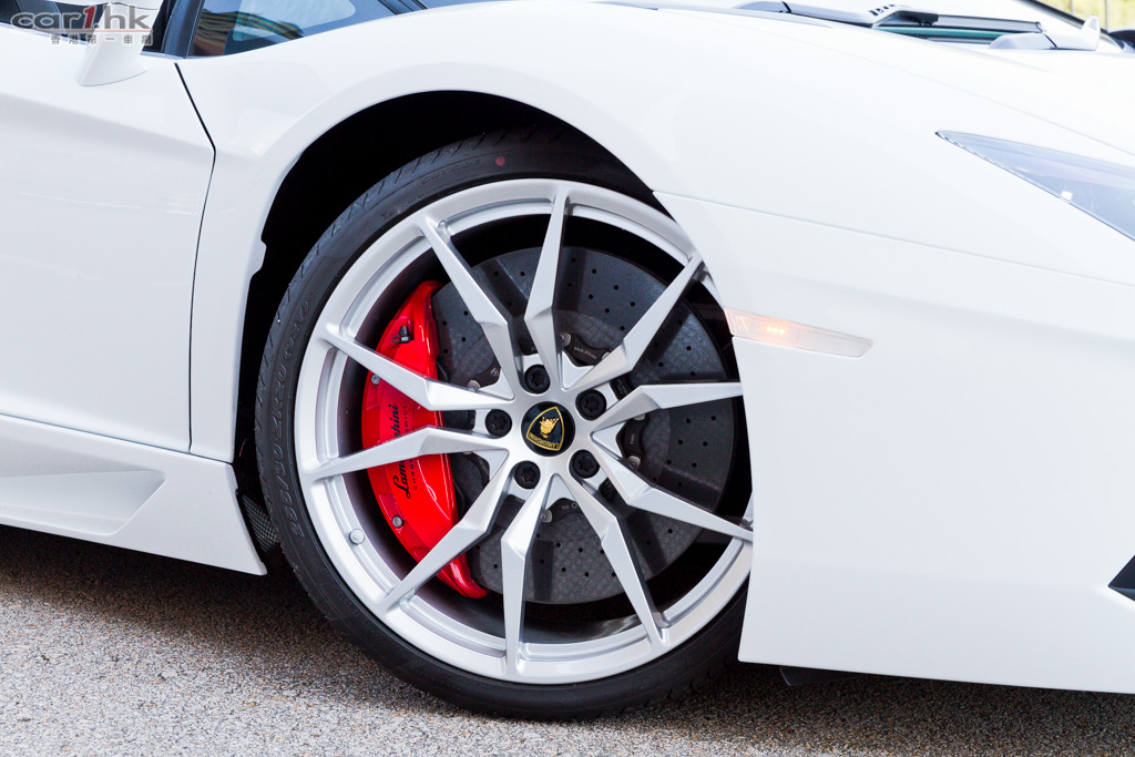 Lamborghini Aventador LP 700-4 ROADSTER 車椅用上了全皮椅,包圍感不錯,由於坐姿很低,亦需要一點時間才能適應。著車時的引擎咆哮聲讓人感到莫名奇妙的興奮,全彩色 LCD 錶板亮起,一切準備就緒。Aventador LP 700-4 使用了與 F1 類似的懸掛系統,利用水平彈簧與避震機,所以攻彎時的準確性與穩定性是非常之高,基本上它帶給你的安穩性在同級是數一數二,再加上四驅系統中應用了 Haldex 扭力分配系統,只需在毫秒之間就能調校出扭力分布,即使不是一流車手也能輕鬆駕馭這隻大牛。這架開篷版的輪圈比普通版更大,使用全新 Dione 20 吋前輪圈和 21 吋後輪圈,使用更輕身的鍛鋁合金打造,相比普通輪圈有 10kg 的減磅功用。
