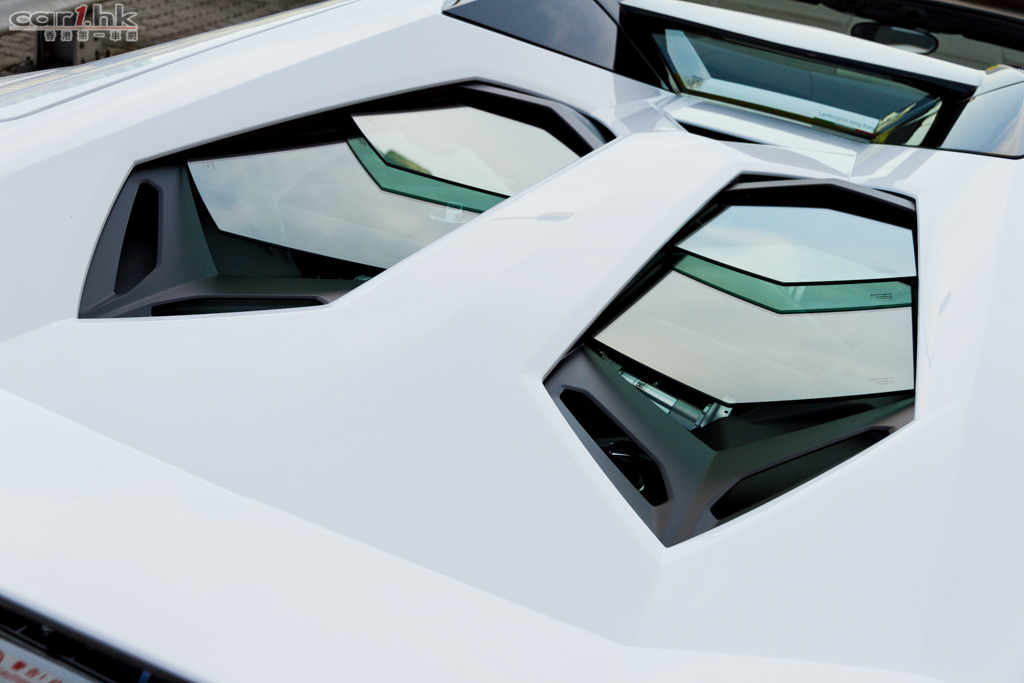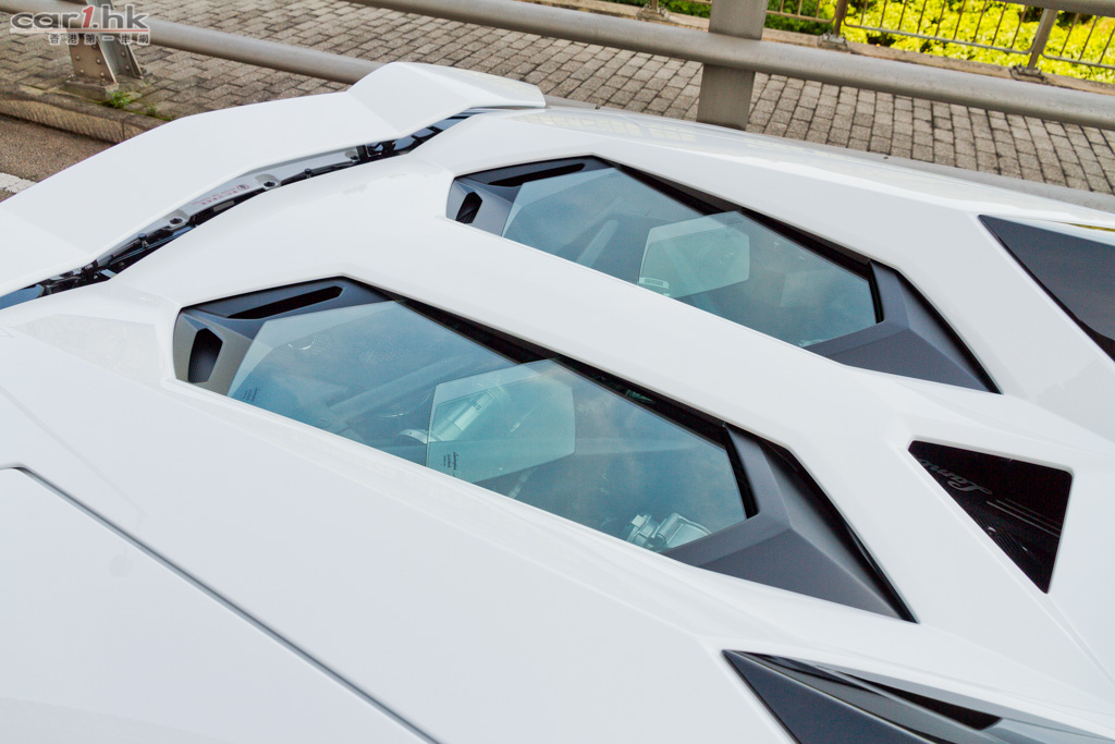Aventador LP 700-4 ROADSTER 的硬頂車篷為手動兩件式設計,使用了 RTM 和 Forged Composite 碳纖維製成,拆解後放在車頭行李室即可。由於這兩件硬頂總重量不多於 6kg,操作尚算簡單,行李室還設計鎖扣,務求令到車頂不會左搖右擺。這款開篷版的引擎蓋連接了四片六邊型玻璃,雙層式架設,除了為引擎室散熱之外,也有助排走雨水。這個尾蓋的設計亦透視到引擎的美態,非常性感。車廂內設有擋風板,為行車時作出靜音之用,雖然超跑高速行車速度很高,但擋風板亦有其效用。座椅後的擋風玻璃為電動升降,除了控制駕駛艙氣流之外,將它打開後還可以感受到更強的引擎運作時的變奏,大大提升駕駛者聽覺享受。