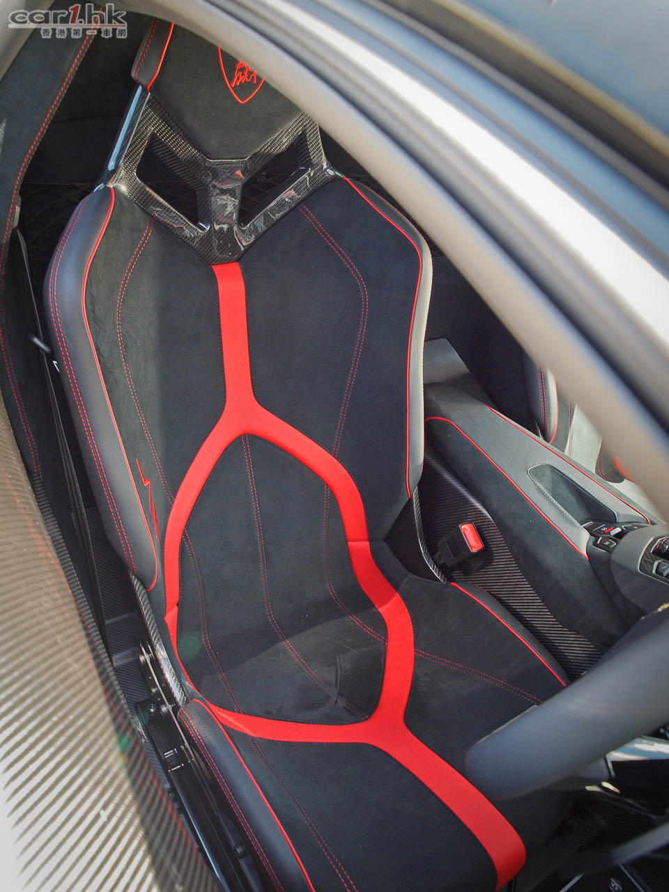 碳纖殼sports seats是以猄皮包裹,有「Y」形皮革圖案。