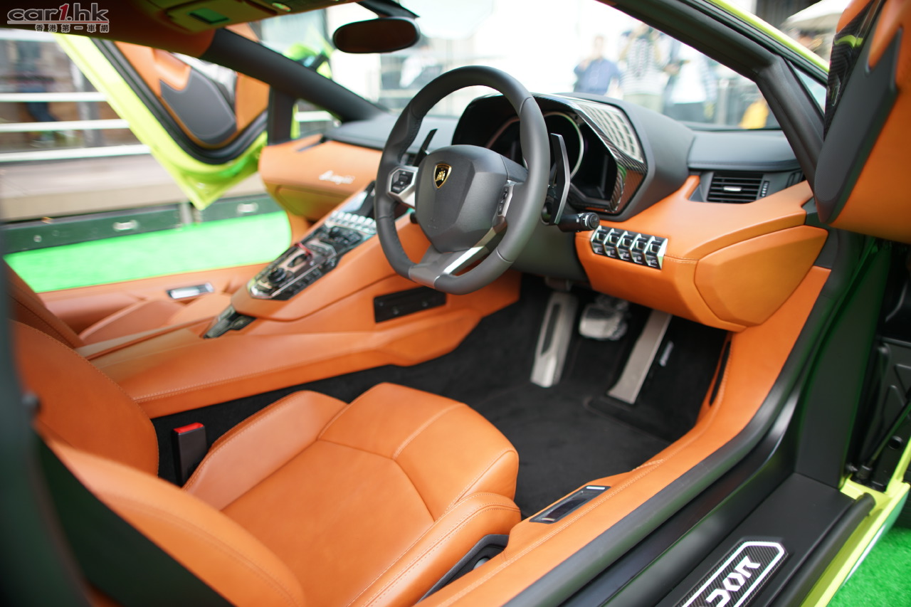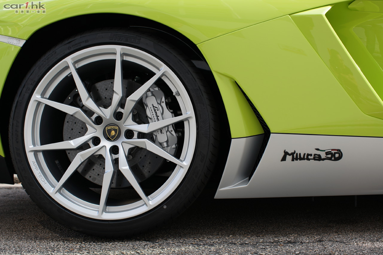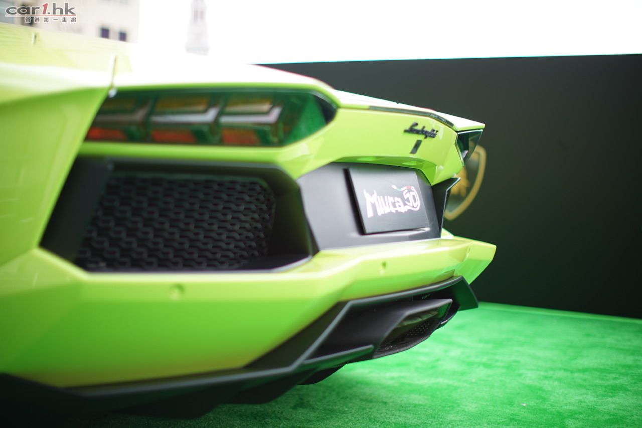 香港唯一一台Aventador Miura Homage用上Verde Scandal青綠外色,襯上啞光銀色作對比色,並配有Terra Emilia啡色全皮革內飾。Aventador Miura Homage售價港幣$8,000,000起(連稅)。