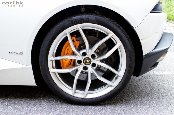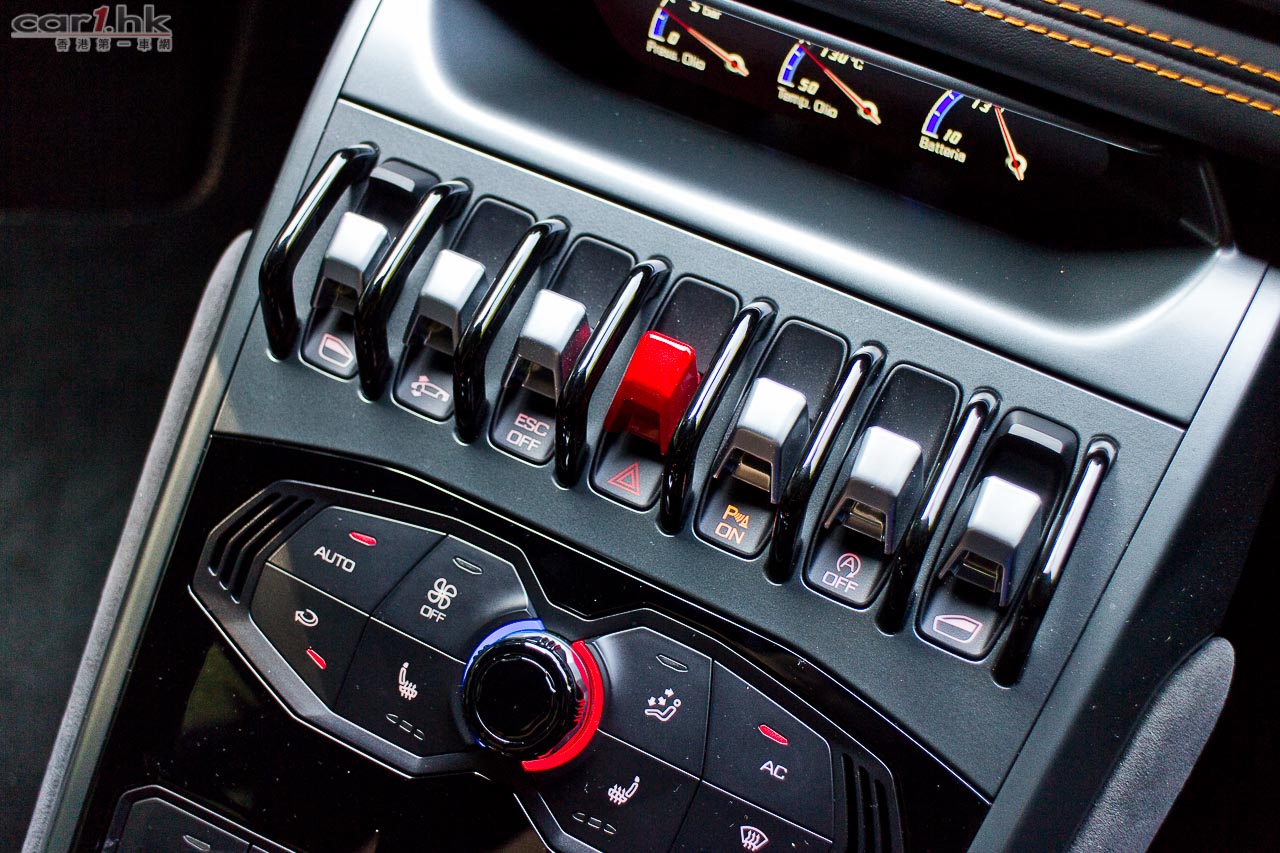 試車幾時都想試最新,細牛 Gallardo 玩左十年不斷靠改款去維持新鮮感,同時亦要令車主覺得比錢比得值得,其實是一件不簡單的事。2014 年新細牛 Huracan 終於抵港,今代大玩起角設計理念,由外到內都充滿未來感覺。一貫細牛體積,亦算適合香港路窄環境,車頭車側車尾不論在頭燈泵把尾燈都大量應用六角型直線去作車身勾畫。加上林寶堅尼獨特的車身外型,一眼就知道是什麼品牌的超跑吧。今次 Huracan 輪圈內的煞車鉗有四色選擇,這部白色車身配橙最搶眼,亦有紅、黑、黃供選擇。輪圈就使用 20 吋,前後透氣打孔碳陶瓷通風碟。講到制動系統這個部份,這部 Huracan 在你煞車初段接觸時,其收車能力是非常非常明顯,不過也沒有說是好是壞,超跑的煞車制動很重要,最緊要好煞和不易超過,這個初段制動力很強的反應,只要開一會就能適應。今代細牛在拍攝時,發覺它的引擎氣勢比過往弱,停車時發出的引擎聲不算太嚇人,斯文了。在 STRADA(街道)模式都有牛的叫聲,不過都是收斂了。轉到「SPORT(運動)」、「CORSA(賽道)」模式空波停車後,活躍的引擎心跳是令人興奮得多。