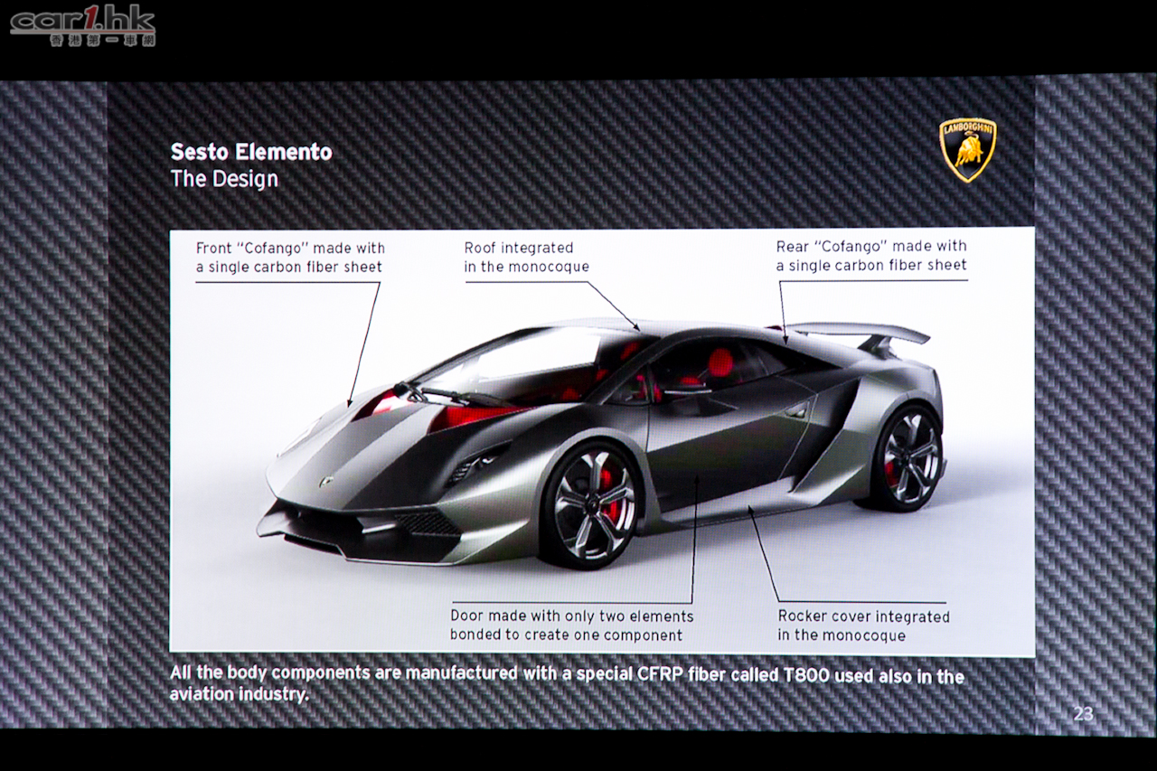身價未連稅已達 $1,600,000 萬歐羅,全球限量 20 輛,全車採用碳纖維製,重量只有 999kg 的 Lamborghini Sesto Elmento 早前秘密抵達香港。香港是亞洲唯一展出 Sesto Elemento 的地區,可見林寶堅尼對香港市場的重視。但可惜只限傳媒及 VIP 欣賞,車迷無緣目睹這輛迷人超跑。