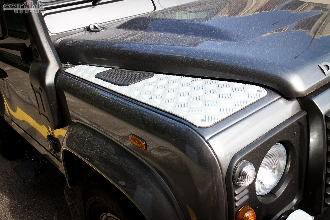 其實近距離接觸到它之後,的確會被它的外型吸引住,亦有別於富有時代感的 Land Rover 車系。代理今次將 Defender 90 Station Wagon 加齊料後,其實在日常使用都方便得多。首先是經常使用到的上車踏板,PIAA 霧燈、車尾金屬樓梯,都是值得添加。如果是愛車之人,車頭的鋁合金車底引擎保護板亦是必需,車已可以再加安拖車裝置,車頭外置引擎進氣管亦是有型配置,如果你要帶它上山下水,這兩個配置亦不能缺少。