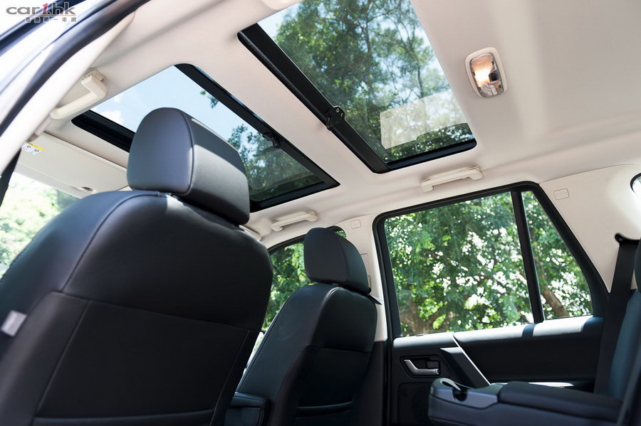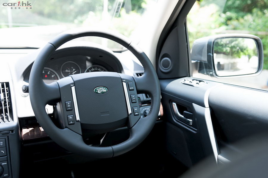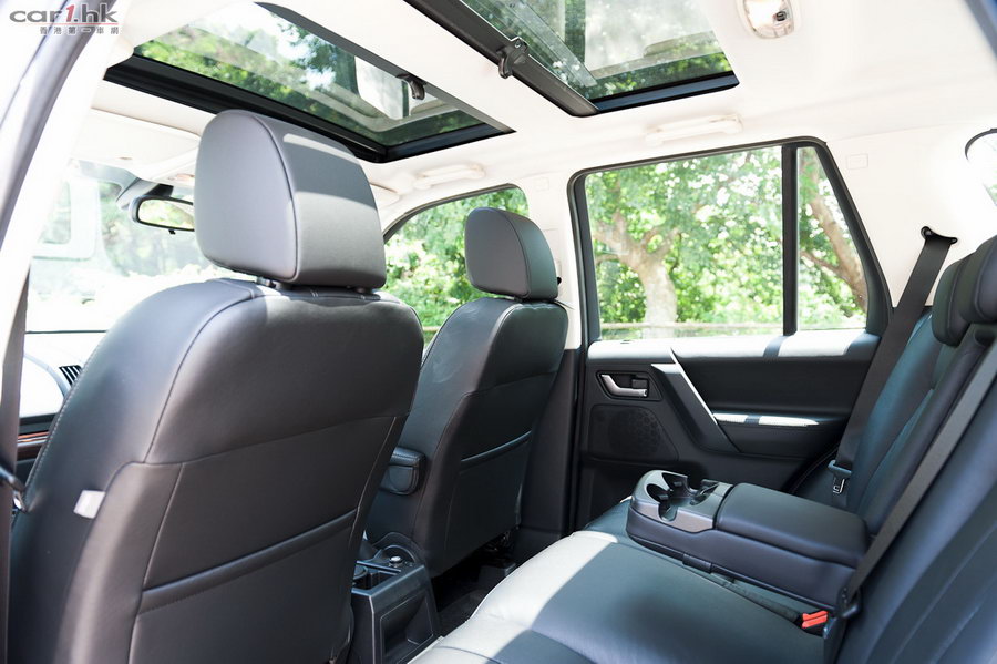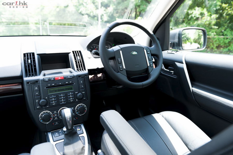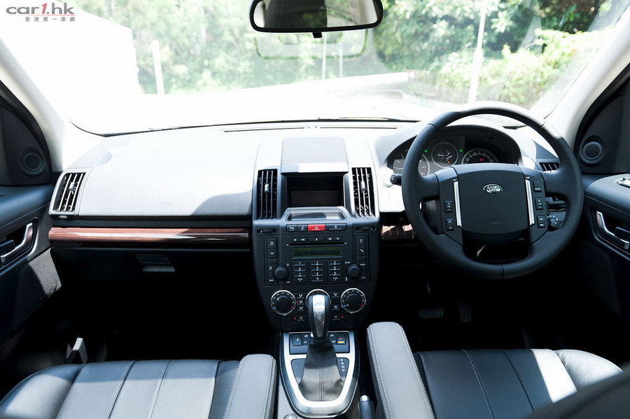 入門版的 Freelander 2 車廂簡約,不過設備都相當齊全,如雙天窗、藍牙免提系統多功能軚盤按鈕、真皮座椅等等。駕駛席也加入了少量木紋飾件,令簡單的車廂不再單調。很多人都會覺得這架車的中控台很多按鍵,看似複雜,只要留心了解它的佈局,便會發現它不太難用,反而有集中的感覺。講到頭頂空間和腳部空間兩方面,這架小小的越野車,在空間感、舒適度方面都令人感到滿意。