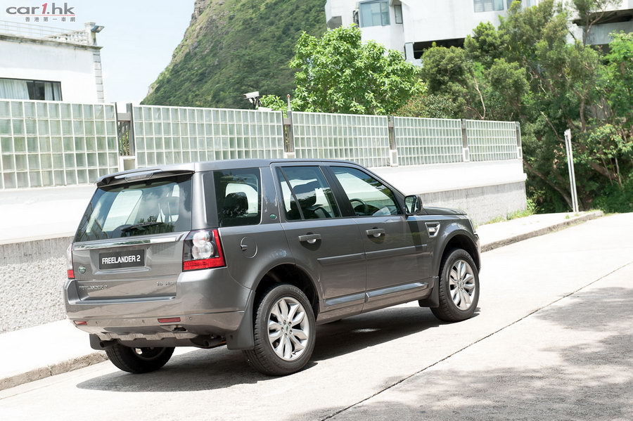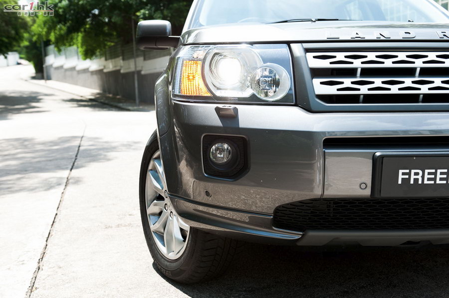 Freelander 2 的 Facelift 版針對過往外表不夠硬朗作出多方面修改,先是特大的銀色鬼面罩,同時再把框邊加粗,車頭大燈和霧燈都以方形線製作,配合整個硬朗車頭設計,非常配襯,不論遠望、近睇依然擁有 LAND ROVER 神髓。再看看車尾,尾門上方加了鴨尾定風翼,同時在中央位置設有大型電鍍飾件,霸氣十足。尾泵把底部亦包上防撞配件,在 Off-road 環境行車有保護車身的作用。由於是入門版關係,Freelander 2 個子不算太大,上落車都很輕鬆,女仕們基本上無需任何輔助都輕易上落車。由於 Freelander 2 是一架越野車,車鈴不會太細,隨車付上的已經是 18″ 輪圈,今次試駕的輪圈設計就斯文大方為主,走大眾化路線。