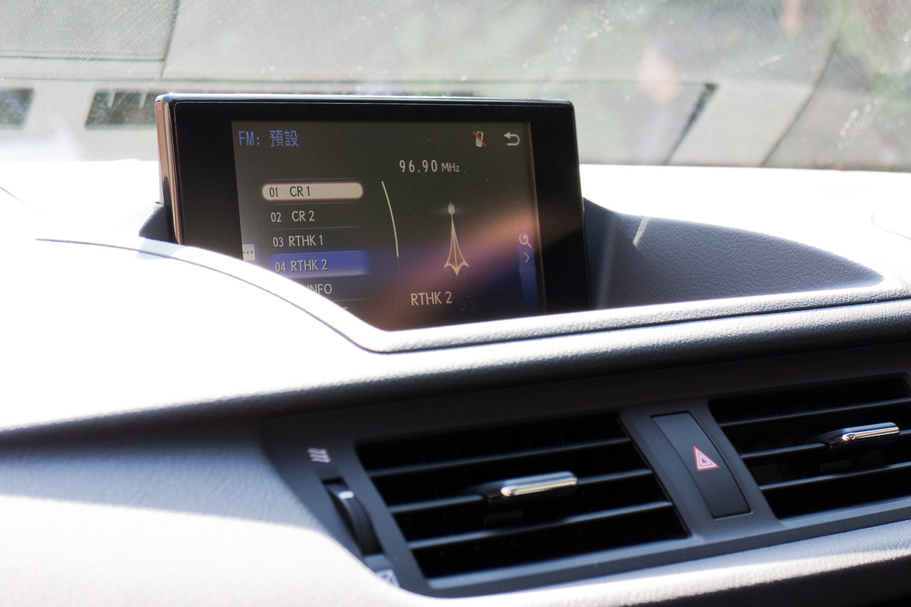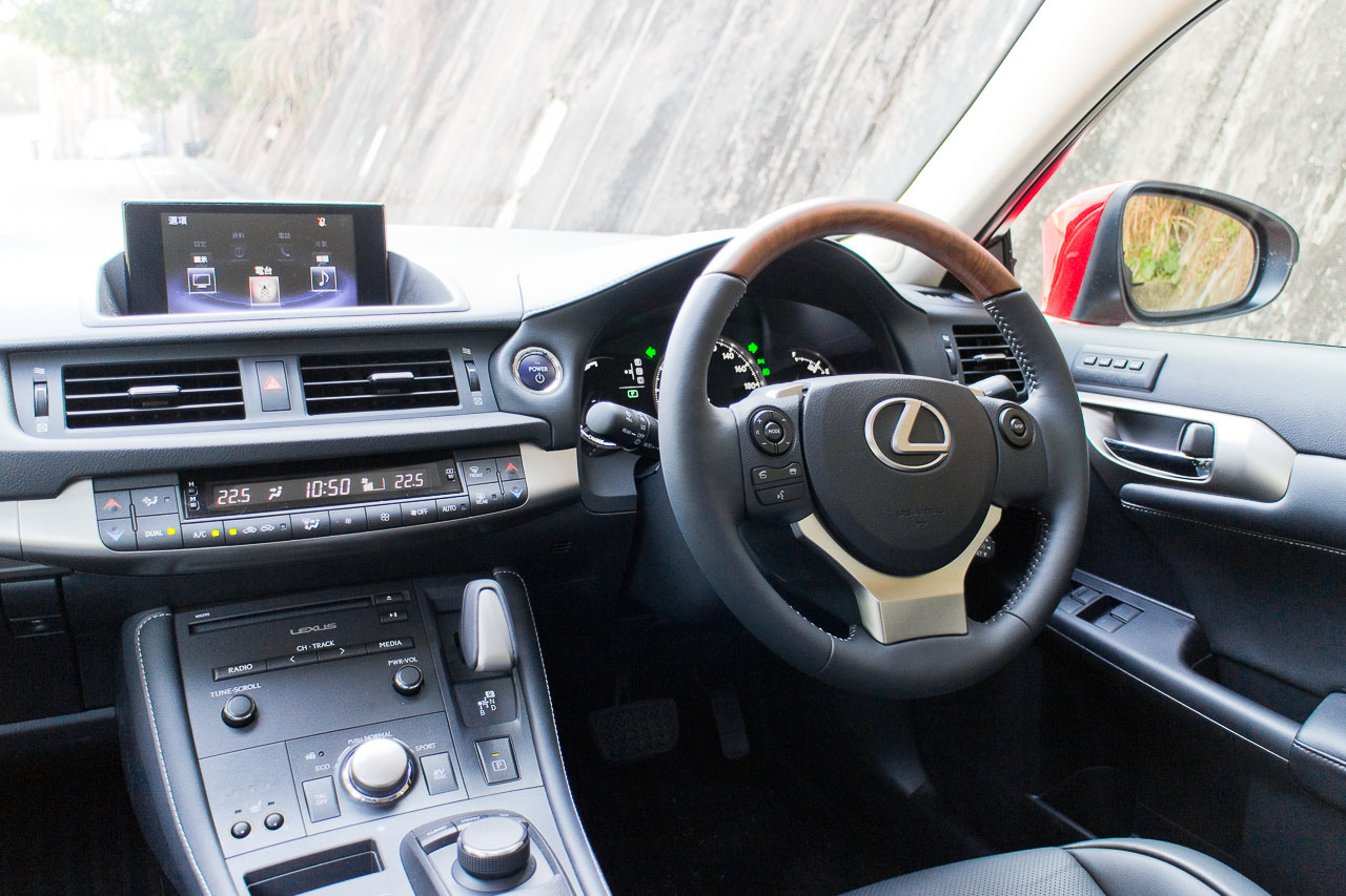 大致相同的車廂設計中,有新款三幅式軚環,7吋中央顯示屏現改得較薄身,金屬波棍包上真皮包邊,手感更加豪華;音響系統採用由竹纖維提煉物料製成的竹質揚聲器,話說能提升音質,同時亦是世上首創以及是汽車界最薄的揚聲器;而我覺得最受歡迎的改動,是一向 Lexus 的 Remote Touch 滑鼠控制器過於跣滑,車子行駛時使用,容易滑過想揀選的按鈕,新 CT200h 的滑鼠控制器改為轉盤形式,更易定位。