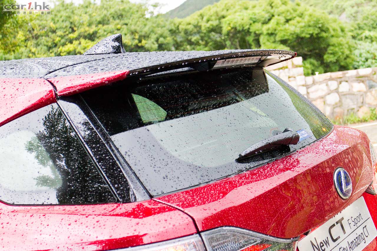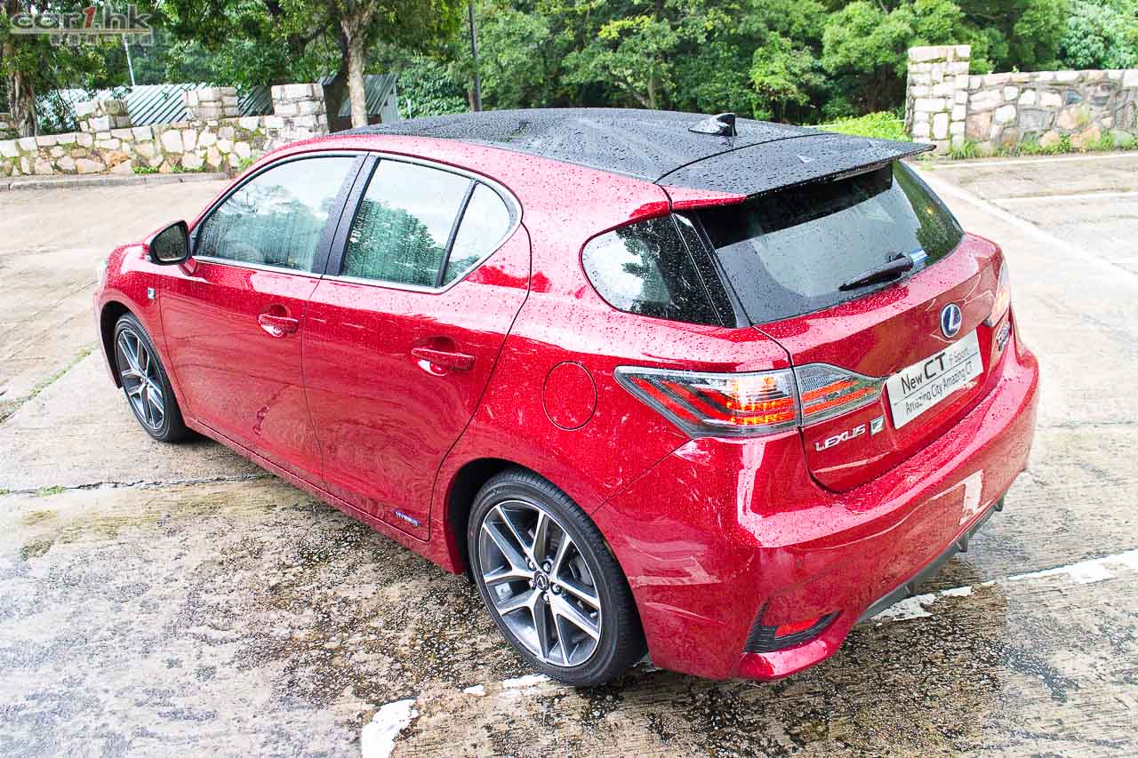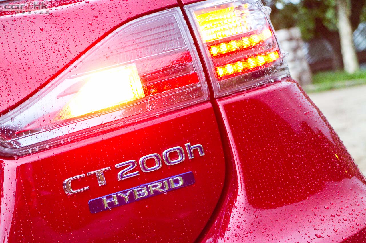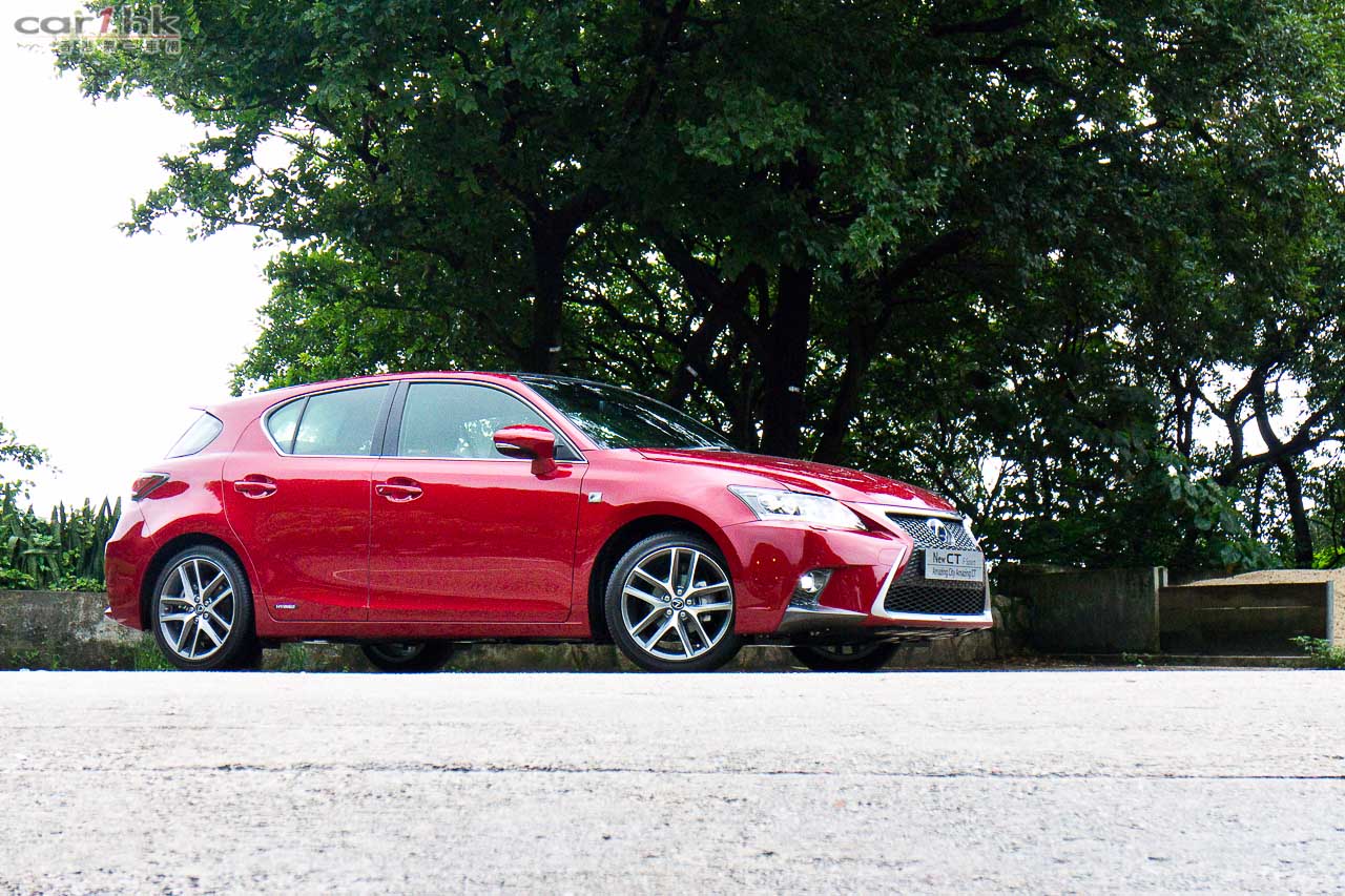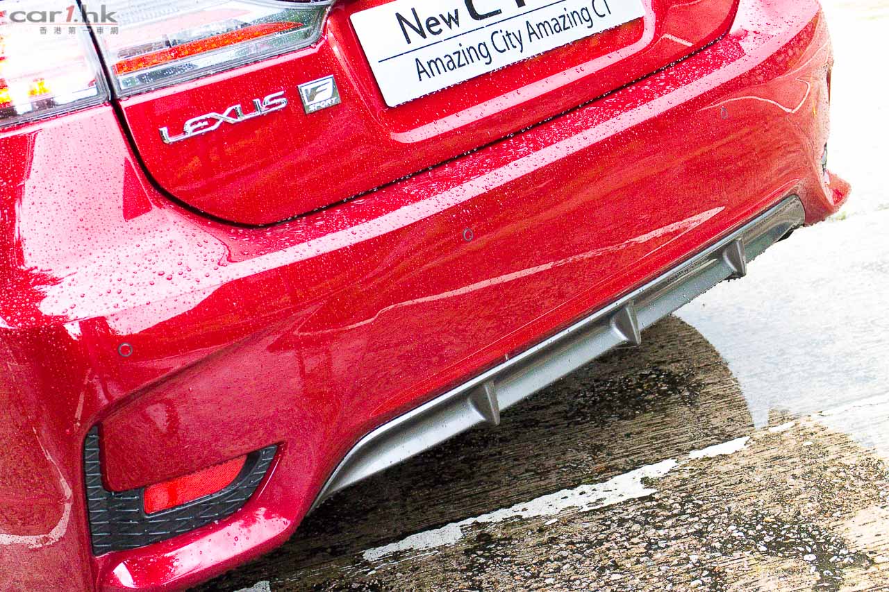 這部 CT200h F Sport 是限量 Passion Red 版本,車身的紅色是特別調校,而車頂的炫光黑讓 CT200h 帶來不一樣的「Cool」感覺。F Sport 版本加入不一樣的鬼面罩、動感泵把、車側 F Sport 車章、炭灰色 17 吋合金輪圈和車尾泵把擾流板,將 CT200h 運動化一面表現出來。Lexus 車系一向都是斯文行先,不過 IS 和 CT 車系都受到一班較為年輕的才俊追捧,因此 F Sport 仍然有一定銷售量,無可否認,普通版的 CT200h 是太過斯文,浪費了揭背車可以動感一面,如果以歐洲車作標準的車迷來說,這部 CT200h F Sport 才是他們的基本門檻。