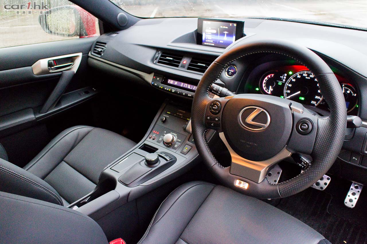 車廂內裝與一般 CT 200h 未有太大分別,軚盤加上 F Sport 車章作身份識別。