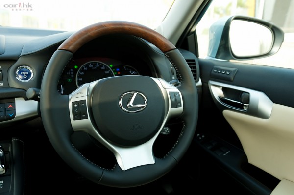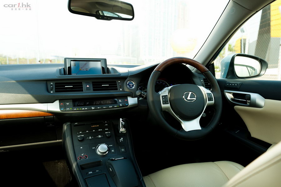 車廂內的配置是 CT200h 的重頭戲,其佈局與一眾 Lexus 車款同樣散發出豪邁風格出來。車內真皮座椅、桃木飾件運用相當平衡,絕不會感到「老土」,當大家著車後其錶板設計、中控台與 7 吋顯示屏同時運作之後,高科技一面隨即而來。前坐暖椅、雙區調控恆溫冷氣、天窗、無匙著車系統、聲音導航系統、Remote Touch Controller 連7吋中央顯示屏等等都可以在這架車找到。
