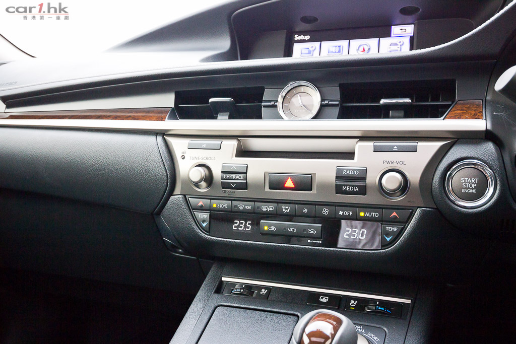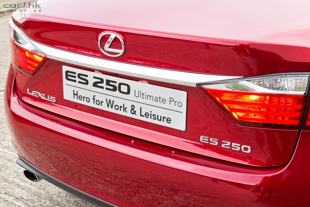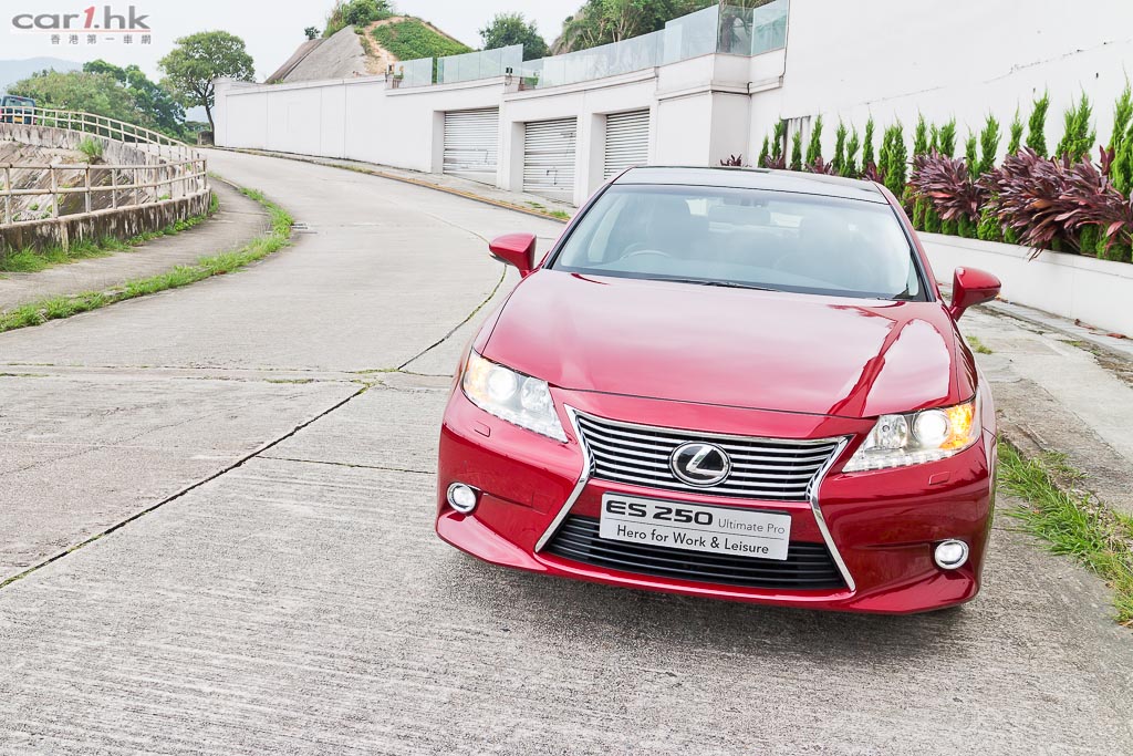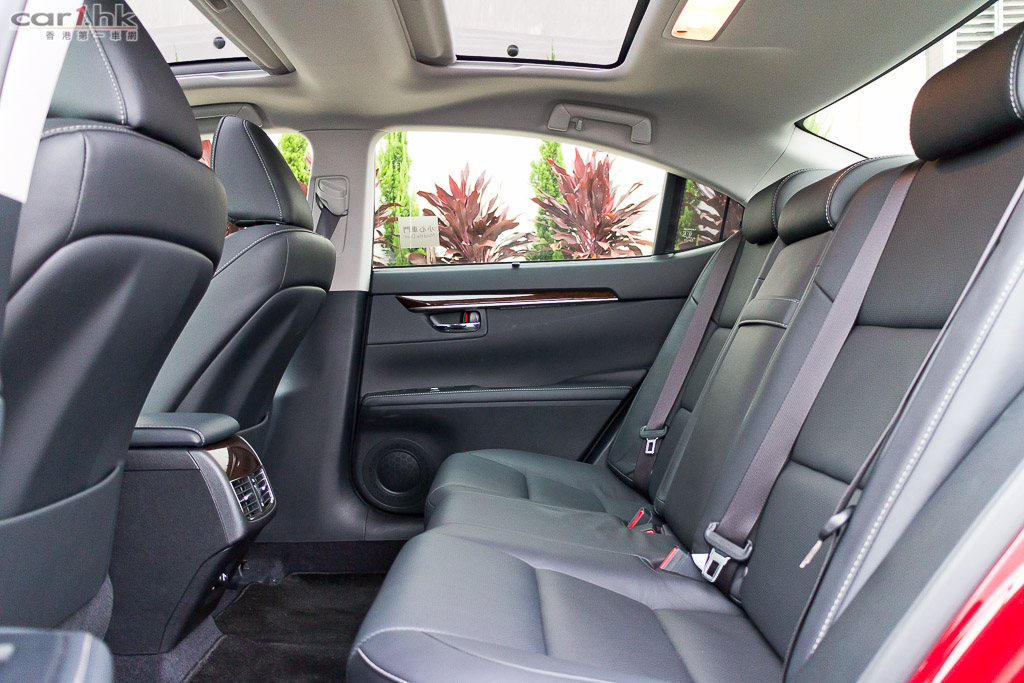 一如其他車系,第 6 代 ES 也用上了家族式設計,Spindle Grill 鬼面罩,配搭鐮刀型 LED 日間行車燈,還有流線的車身設計加上極度搶眼的紅色車身,雖跑味並沒有 GS 或 IS 強,但豪房的時尚質感絕不比 LS 低。同時,ES 為中型房車設定,長 4,900mm 及闊 1,820mm 的尺碼為車廂帶來優越的乘坐空間,加上採用前驅格式,使後排並沒有中軸槽位,平地台設計即使坐中間的乘客也無須屈曲雙腳,後座中央手枕更附設冷氣及音響遙控功能。而且今次試駕的為 Ultimate Pro 版本更有著全景式電動天窗、真皮座椅連前座冷風裝置 、十方向電椅連記憶系統、第二代 Remote Touch 操控及語音導航及 Nano-e 空氣淨化功能的三區域自動恆溫冷氣、8 吋中央彩色屏幕及電動後窗太陽簾連同後座車窗太陽擋,設備豐富程度可獲猶如旗艦級老闆車般享受。