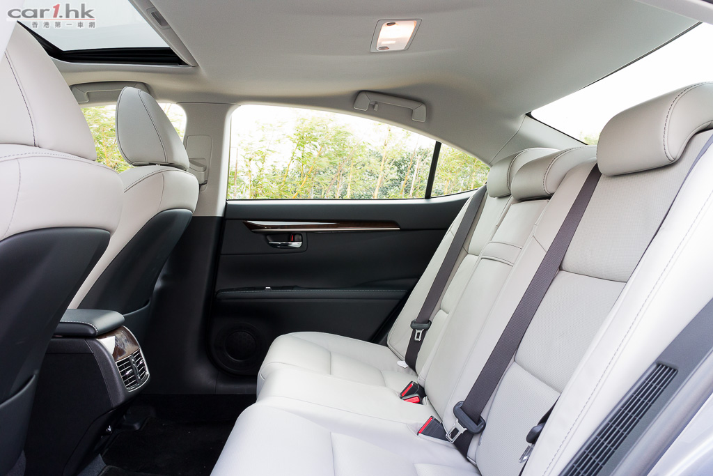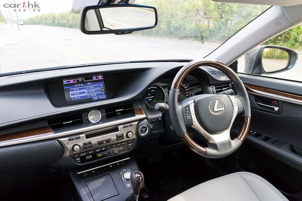 ES300h 使用 2.5 公升 Dual VVT-i 引擎及電動馬達,配合電子無段變速波箱,馬力可高達 205 匹,扭力輸出為 213Nm。ES300h 駕駛感與 ES250 接近,但加速方面卻明顯更暢快有勁,不過大油加速的反應還是以舒適為主,而且有賴全新的底盤及懸掛,使行車的穩定性大增,試駕一整天感覺全車寧靜和輕鬆自在。加上今時今日, Hybrid 車型的慳油實惠已經更成為消貴者的第一考慮因素,ES 重回香港當然也必須增加混能型號,ES300h 的油耗成績為 18.5km/L,以每公升油費 $16.5 計算,每公里只需 $0.9,對於車迷絕對是相當吸引。