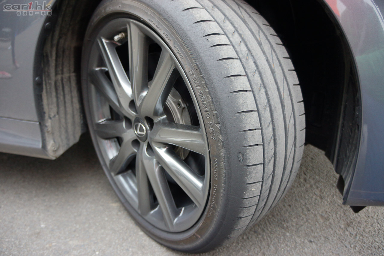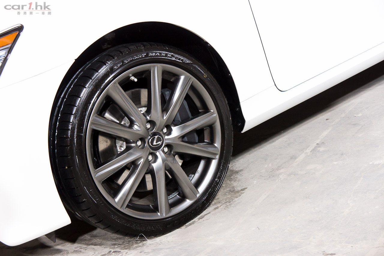 F-Sport 獨有的碳黑色 19″ 合金輪圈,現在白色車身甚為搶眼。