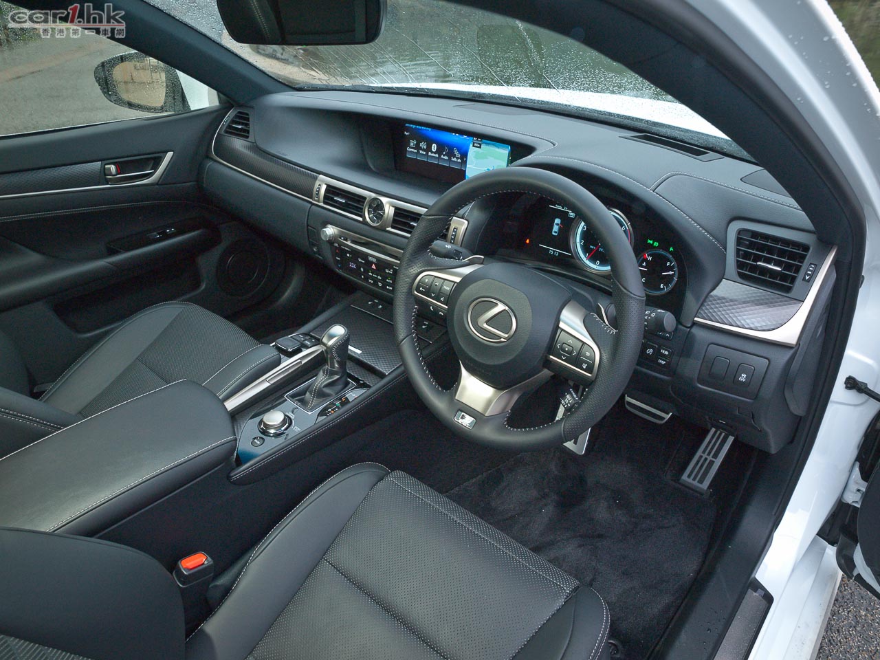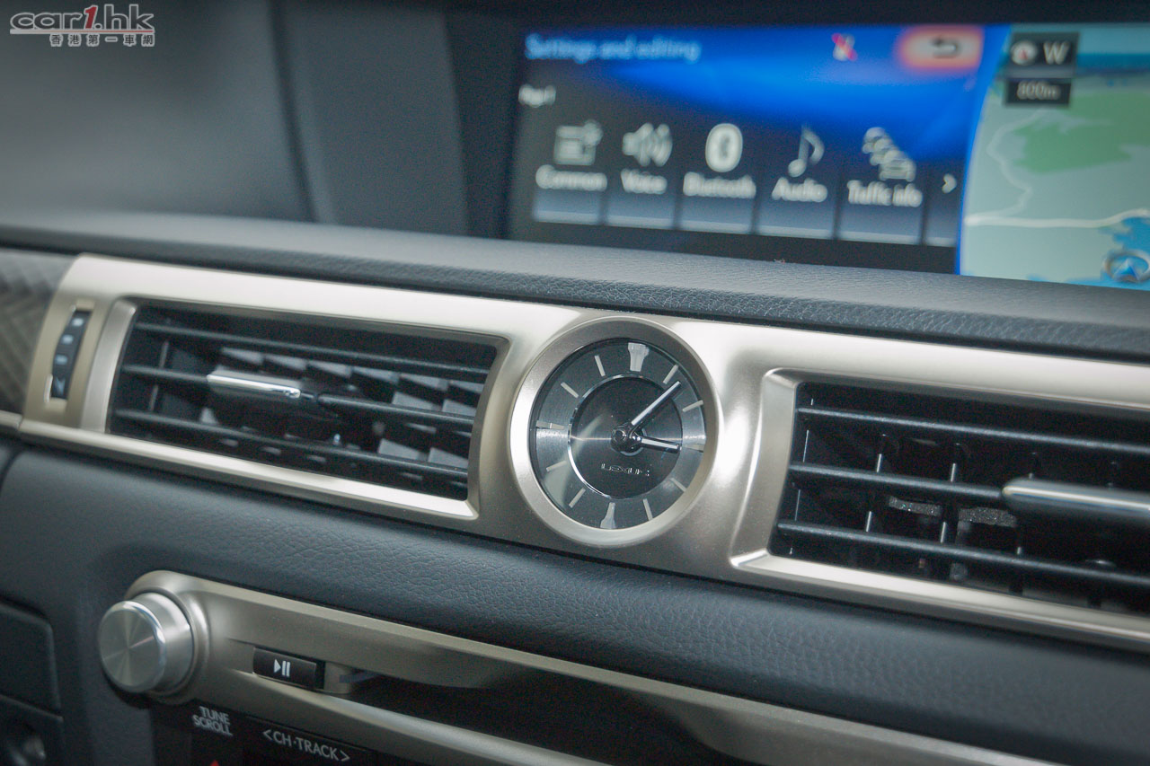 沒大不同的車廂,「T」字形的厚厚錶板和中控台,有中級行政房跑車的氣勢和 Lexus 固有用料和造工水準。前座同樣有多達18段電動調校,包括大腿墊升降、腰墊和椅背充氣等,舒適和承托一流。由一整塊鋁鑄造出來的時鐘,以 LED 光點指示。可開關的 HUD 投射儀錶,顯示速度、轉數和波段。超闊的 12.3 吋 split-screen 左右屏幕顯示屏,冷氣、導航、音響、車輛設定等功能都可憑很滑的 Remote Touch 滑鼠控制,即使停車使用,也經常滑過想要的按鈕,行車時我已放棄嘗試用它。足夠寬敞的後座,有齊左右窗和後窗窗簾、中橋冷氣出風、厚重的手枕連雜物盒連杯架,同級來說沒有投訴。隨小改新出的,標準 GS 有深灰色「3D Film」錶板飾塊,F Sport版本則有像格仔餅的「Naguri aluminum」鋁片,而 F Sport 除有鋁腳踏和「F Sport」標誌軚盤外,其儀錶亦改為與 IS F-Sport 類似的「LF A」儀錶,主轉數錶在 Sport mode 時會由黑圈變為白圈,接近紅線時再亮起紅圈,超好看!左方顯示屏新有 turbo/油壓/水溫錶、耗油量、指南針、Eco慳油計、G-force錶等,比 IS F Sport 更多訊息。