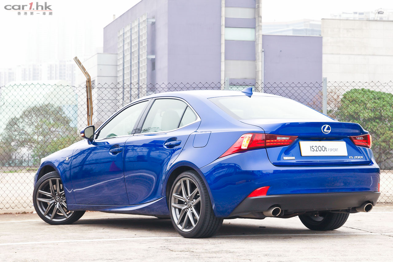 今代 IS 跟隨 GS 一樣,車架在不同地方由點焊改用鐳射焊接,以及用膠水黏合,車架硬淨;後懸掛改用GS的多連杆設計,抗傾能力高 20%,F Sport 版另有其懸掛設定。駕駛模式改變系統同樣有「ECO」、「Normal」、加快油門和波箱反應的「Sport S」以及再將懸掛加硬/軚盤加重的「Sport S+」;各模式的反應與試過的一樣,「Normal」時轉波反應就像一般房車自動波的輕柔,懸掛是很不跑房車的舒適;「Sport S」時盡油加速,波箱就像平治AMG或是寶馬 M 車般波波 chok 頸,拖波補油,確實爽快,正!「Sport S+」之下,軚盤稍重少許,懸掛硬化少許,跑化得來,保持Lexus的斯文,將車左掟右掟時後輪微甩,然後穩定系統將車鎖在 understeer 的狀態,待車速磨低後才再將油門反應重交給你,動態反應一樣。IS 200t 則沒有在 IS 350 F Sport 接觸過的 VGRS(Variable Gear Ratio Steering)2.5-3.5 手軚可變齒輪比轉向系統,但其軚感同樣是 Lexus式 的輕鬆、順滑。比起最初賣 $698,000 的 IS350,IS 200t 型號售價由 $449,750 起,豪華些的 Ultimate 版本賣 $473,500,測試的這部 F Sport版要 $515,500,比 hybrid 的 IS 300h 便宜 $13,500。