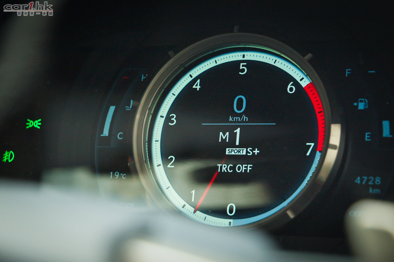 「Normal」時轉波反應就像一般房車的輕柔,懸掛是很不跑房車的舒適;「Sport S+」之下,軚盤稍重,懸掛稍硬,跑化得來,保持 Lexus 的斯文。