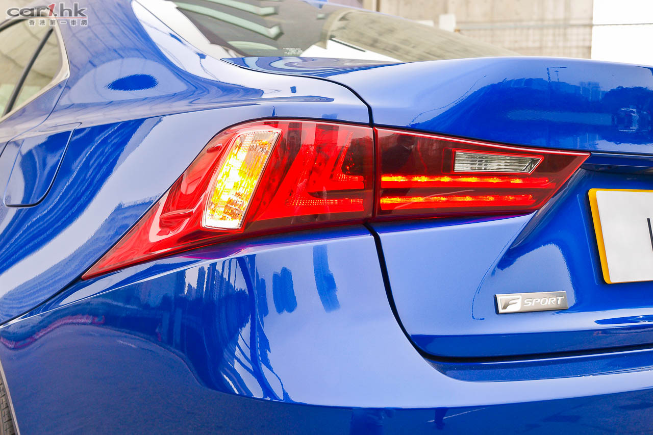 型格的IS,頭燈下有那貌似Nike「whoosh」剔的LED日行燈,F Sport有黑色攣紋「spindle grille」鬼面罩,不同形狀較大入風口頭泵把。