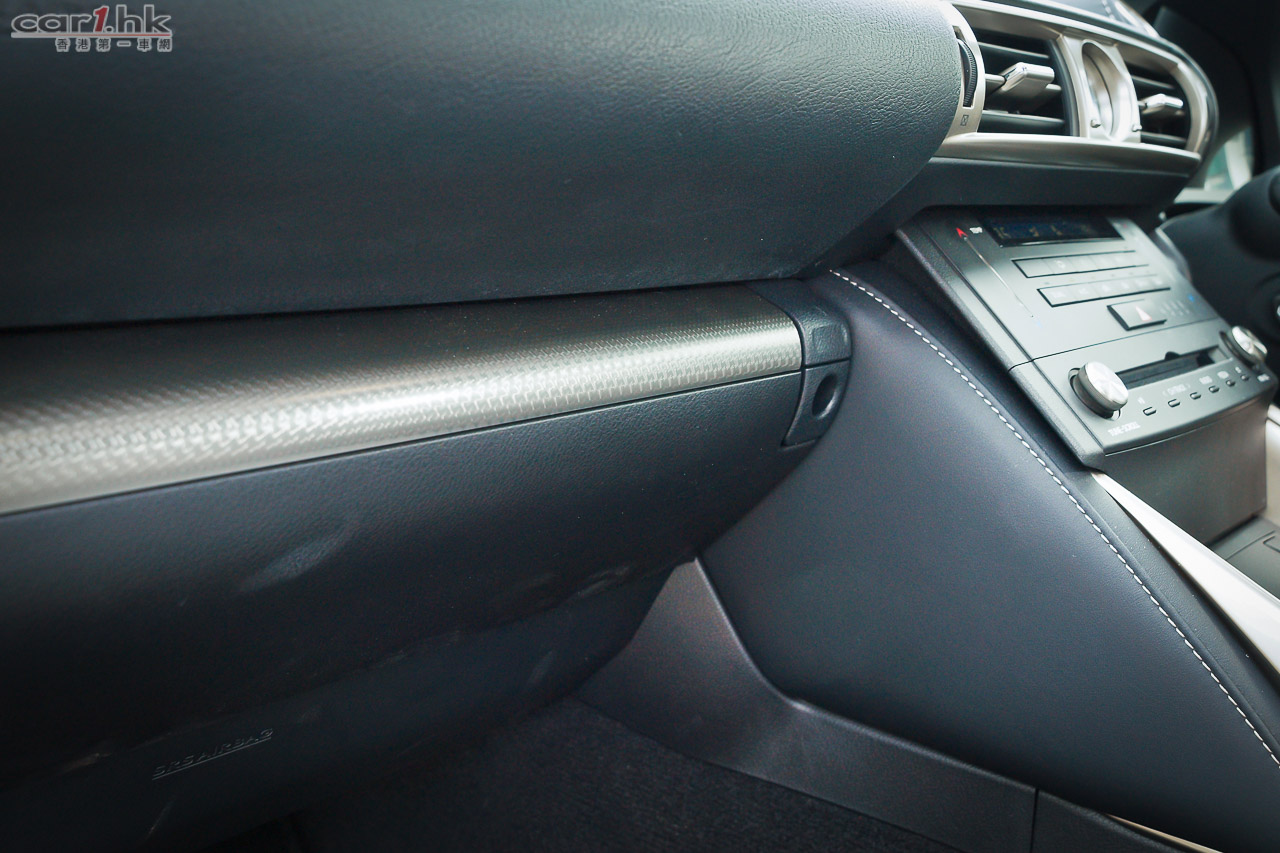 IS 200t 有普通版,豪華些的 Ultimate 版和測試的這部 F Sport 版,車子 F Sport 化的地方與之前的 IS 350 F Sport 大致一樣,車外同樣採用像衝浪的不同形狀較大入風口頭泵把,黑色攣紋「spindle grille」鬼面罩,仿效 LF A 的深灰色18吋輪圈,凸出的雙排氣喉,沙板「F Sport」標誌,前窄後闊(225/40R18和255/35R18)輪胎;車內同有仿效 LF A 的可左右移動儀錶、軚盤「F Sport」標誌、鋁腳踏、門檻片和 F Sport 專用前座設計。