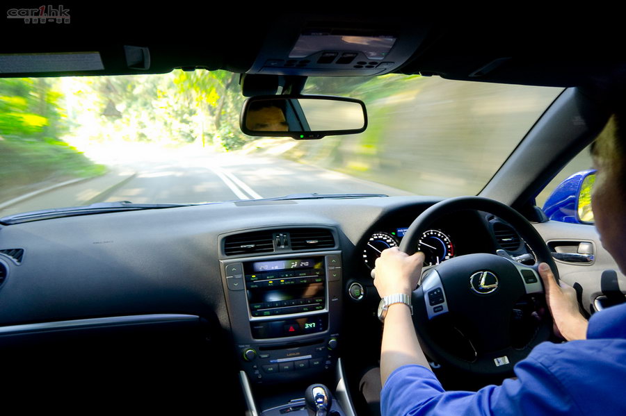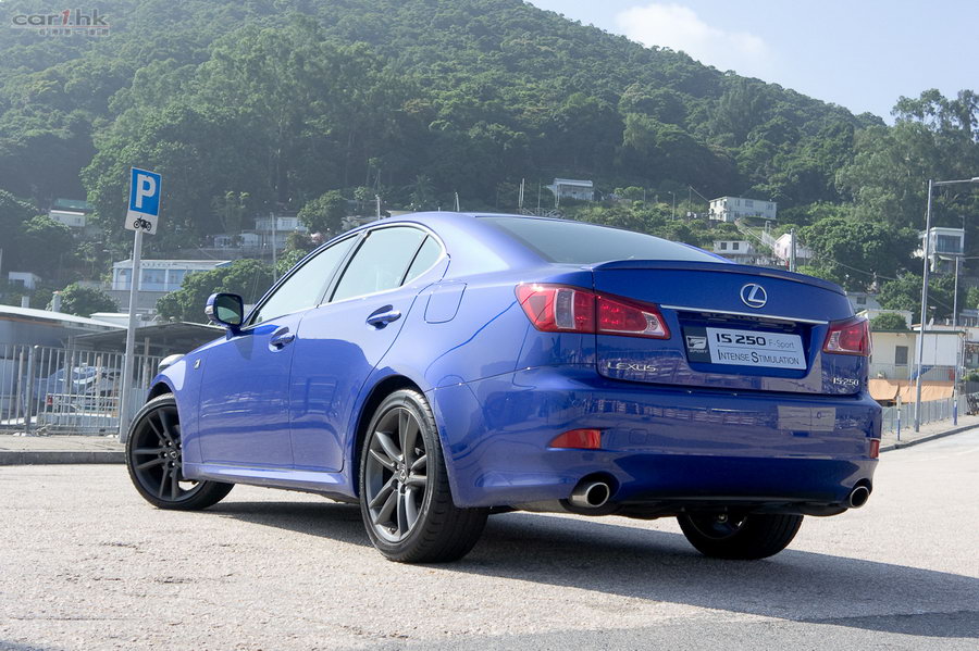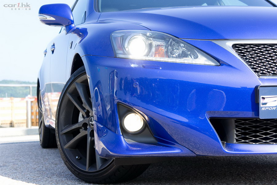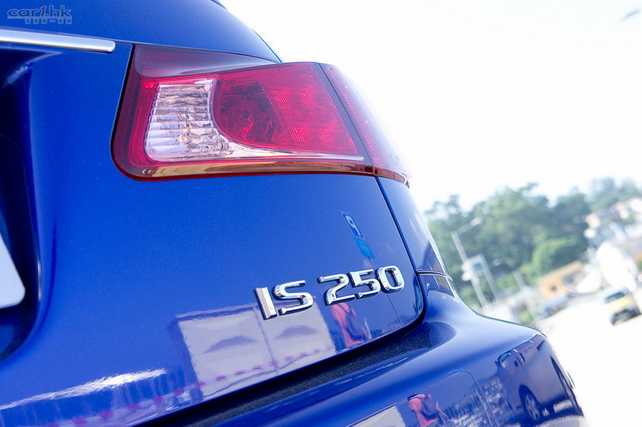 Lexus IS250 F-Sport 論外型真是挑戰同級房車斯文形象的極限,玩流線設計不能大家都見慣,不過仔細比較一下這架車的 Bumper 上的擾流器、細密的車頭鬼面罩,與常見的 IS250 確實動感很多。車鈴改用 18″ F-Sport 獨家款式,五對直柱設計,加上以炭灰色打造,視覺和跑感十足。IS250 F-Sport 車尾還加了一個小鴨尾,跟隨車尾的你相信也感受到運動化後的氣勢。為表誠意,車廠為這架車調校全新車身顏色,亦即是今次供傳媒試駕的 BlueMetallic,由於車身線條明顯、再以電鍍位配合,BlueMetallic 配上 IS250 F-Sport 的確搶眼。