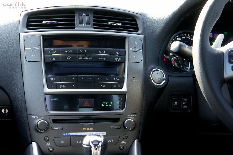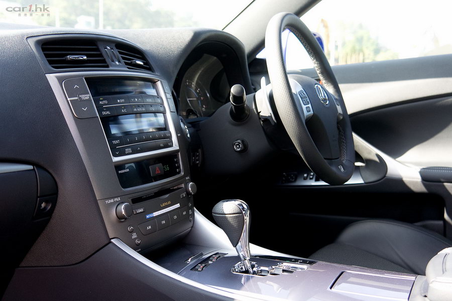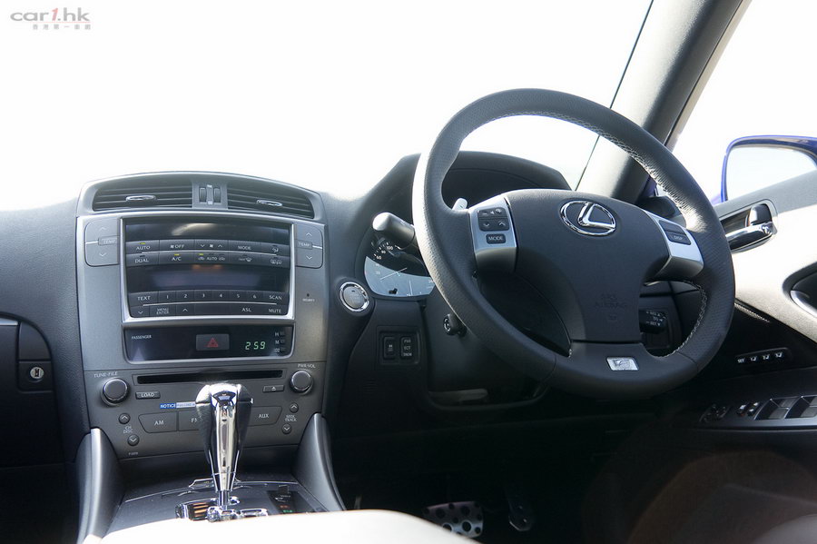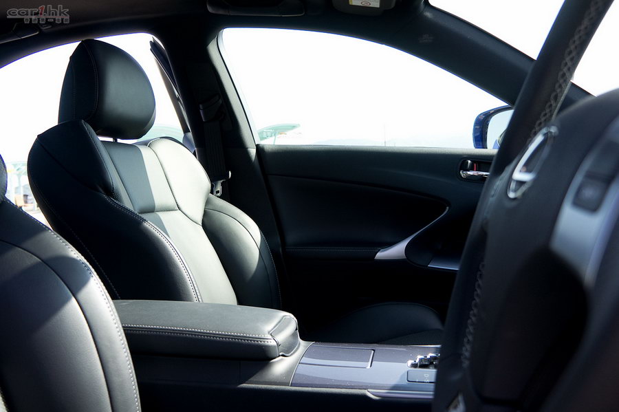 Lexus IS250 F-Sport 心臟沿用 V6 Dual VVT-i 2,500cc 引擎,馬力依然是 208 匹和 252 牛頓米扭力,配以 6 前速 +/- 變速箱傳動。為了令操控貼服一點,廠方為 F-Sport 加入運動化懸掛,和 F-Sport 的前後通風剎車碟。試駕後,F-Sport 過彎感覺來得紮實平順。司機位的腳踏採用金屬物料,加上防滑設計,令腳部操作更穩陣。車椅使用 Semi-aniline 真皮桶椅包圍感不俗,不過這張椅也是舒適先決,以迎合購買 Lexus 車主的口味。
