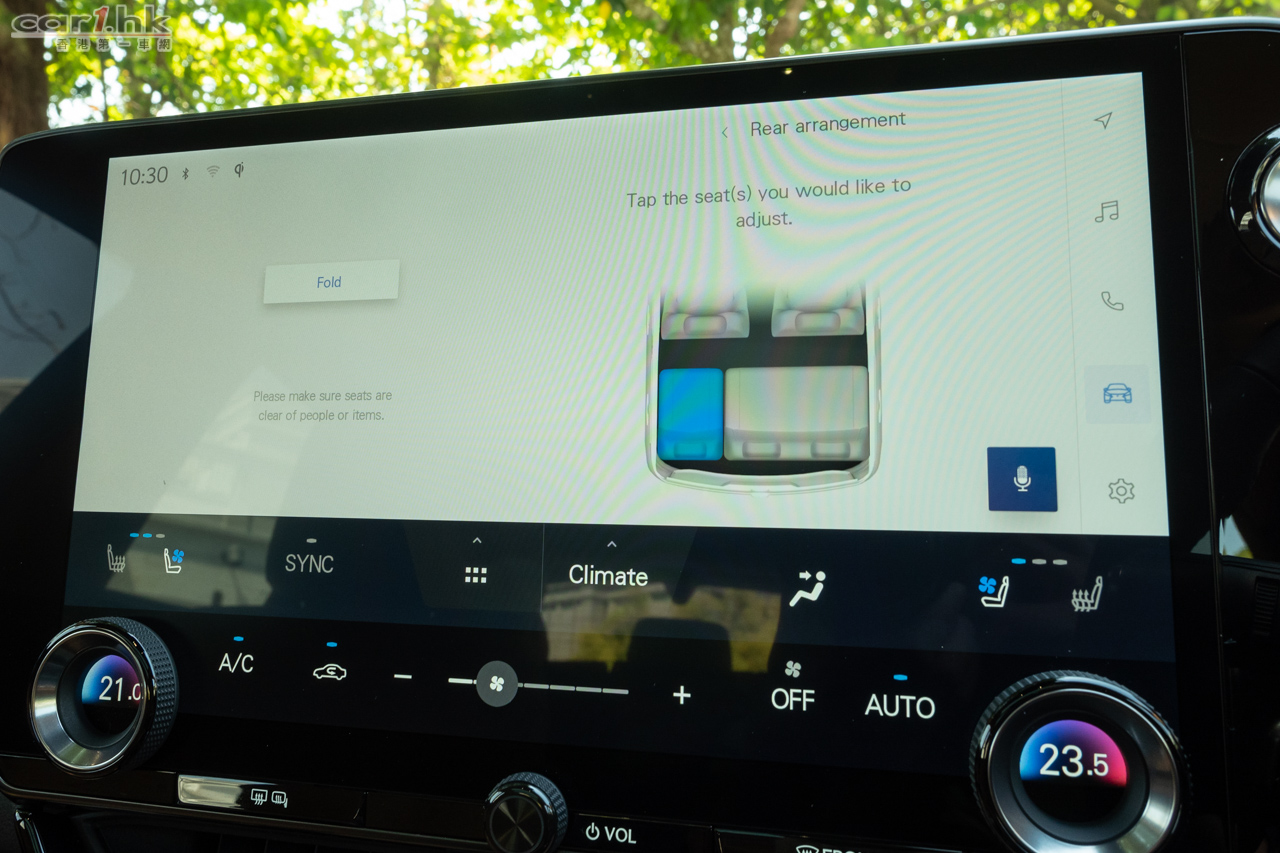後排椅背可按屏幕彈低;白底、藍字的頁面設計,有近似 Tesla 像實驗室的簡約感。
