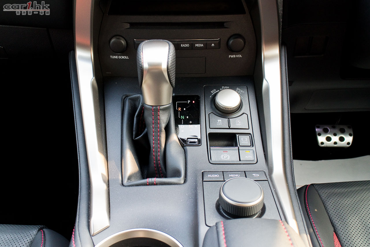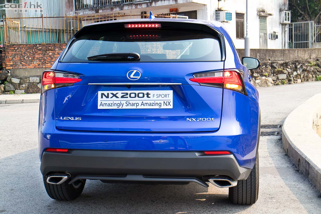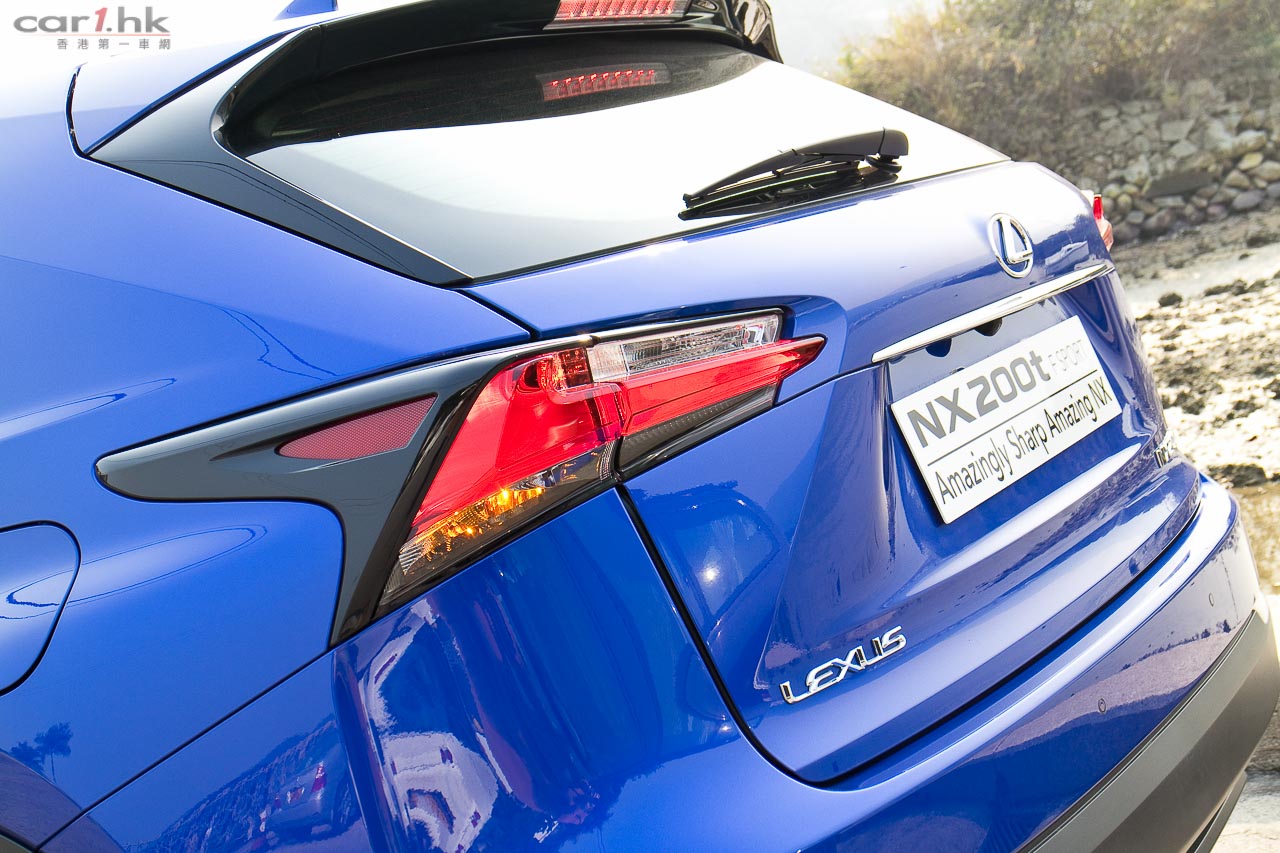 測試的NX 200t,乃Ultimate和Luxury以外的F Sport版本,售價43至52萬元。車子「F Sport」化的地方,有銀/黑色下唇的頭泵把、「攣毛」狀的鬼面罩、前沙板「F Sport」logos、18吋F Sport輪圈、黑殼/銀邊的門邊睹後鏡、兩個梯形死氣喉咀;車內改用F Sport軚盤、鋁腳踏、紅/黑色F Sport前座、有紅色縫線的黑色皮革、F Sport儀錶特有G-force meter和turbo壓力錶;底盤也有其「F Sport」化之處,就是採用較硬的performance dampers吸震筒,前支柱式/後雙搖臂懸掛經同一班調校LFA的engineers調校過。