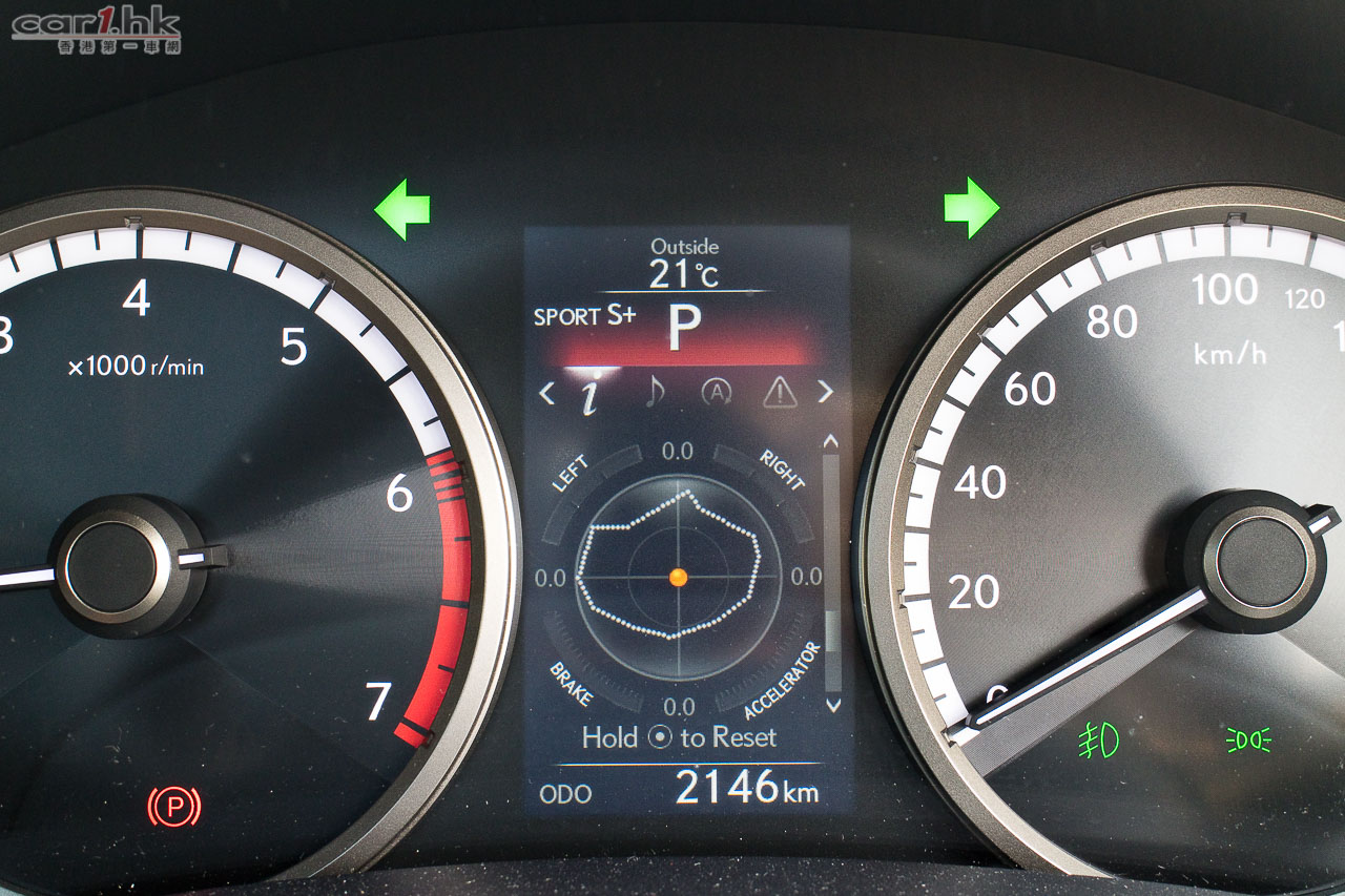 設有電子hand brake、防溜後Hold功能;可關掉的traction control,一如所有Lexus/Toyota,轉眼又會自動從啟。