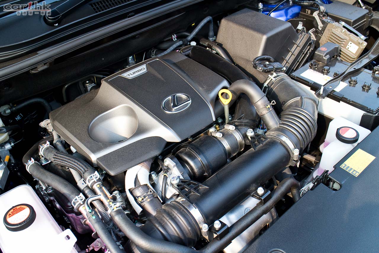 今次再試的 NX 200t,採用 NX 車系有的第二款引擎:2.0 升直四直噴加 turbo!是Lexus/Toyota 首台 2.0 升渦輪增壓引擎,設計重點有與寶馬一樣稱呼的「twin-scroll turbocharger」;在「Dual VVT-i」後加個「W」字的Dual Variable Valve Timing-intelligent Wide(Dual VVT-iW)雙凸輪軸可變正時系統,有特大活瓣開合角度;綜合有水冷管道的廢氣 manifold;「D-4S」後加個「T」的直噴系統(D-4ST)是特為 turbo 引擎而設;引擎設計路向旨在優化燃燒效能、從低轉起有可觀的扭力輸出、運轉順滑、加速強勁;輸出有 238 匹/350 牛頓米,比 Lexus 其他例如 IS 250/GS 250 的自然吸氣 2.5 升 V6 的 209 匹/253 牛頓米輸出勁得多。6 速自動波箱是專為 NX 200t 的 turbo 引擎而新設,可手動 +/-,有一稱為「torque-demand control logic」的智能控制,大致上是根據扭力需求而 keep 住轉數的軟件。