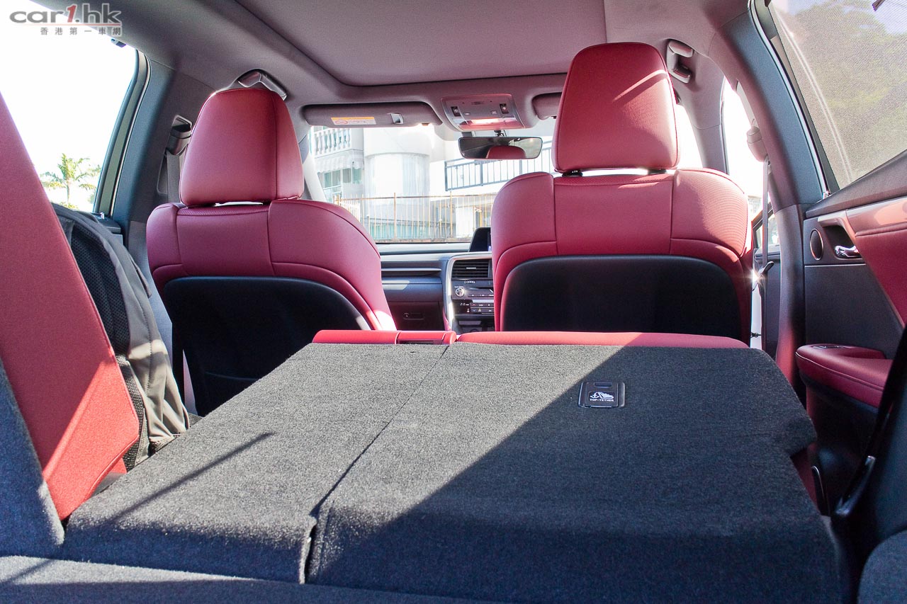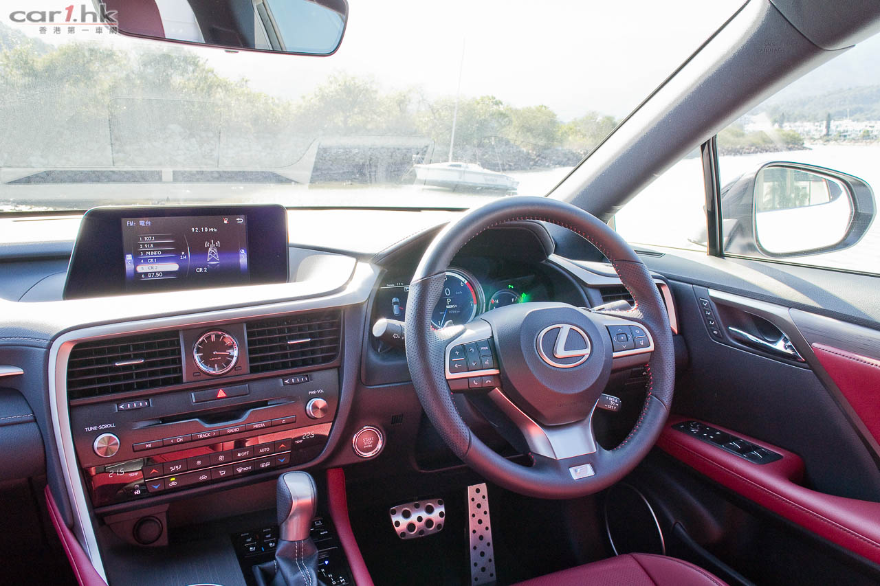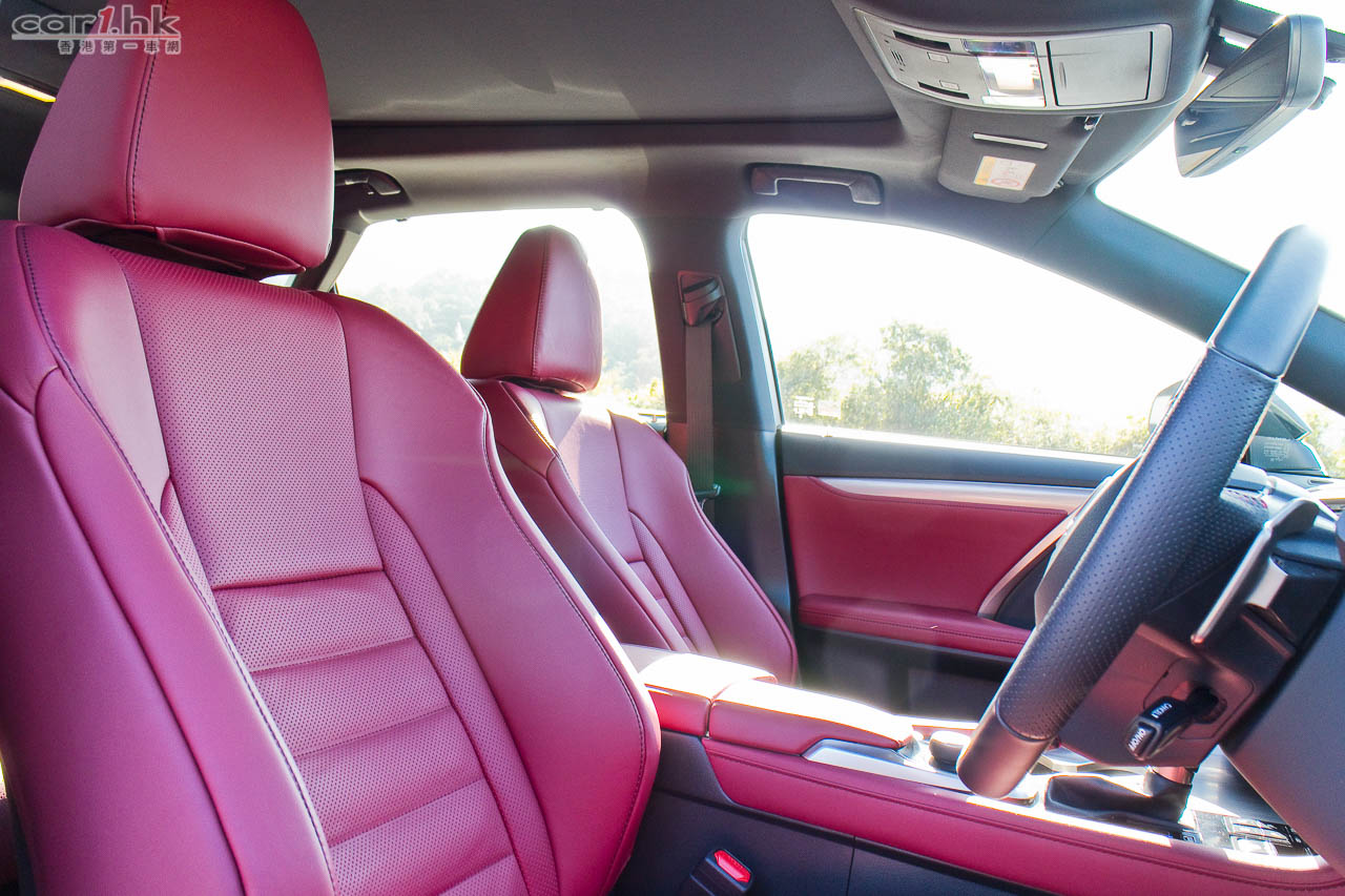 近年 Lexus 車系都是玩起角設計,其設計對用家來說也出現過極端情況,「鍾意的好鍾意」,「唔鍾意的會愈望愈唔鍾意」。不過這的確是 Lexus 的將來設計方向,筆者是很喜歡如此設計。今次試駕的 RX 200t 在外觀有 F Sport 包圍變得更惡外,賣點還有走馬燈的指揮燈,其實這個設計早前 Audi 已有頂級跑車 R8 應用了,不過未能帶入香港,今次 Lexus 成功引入,對車主來說是多一點新鮮感,實際用途筆者覺得潮多於實用,還是那句「鍾意的好鍾意」。RX 今代的空間的確變大了,其中功臣絕對是 2,790mm 的軸距(比上代長 50mm),雖然上代已經很好,但是今代更好。加上車頂大型天窗,將後座空間感進一步提升。前座有暖風車椅、左右獨立恆溫冷氣、全車紅色真皮座椅,舒適性一貫 Lexus 感覺。後座車窗還有窗簾設備,有助日間阻撓陽光。另外,中控台及門板加入 LED 氣氛燈,令到整個車廂在夜間時感覺輕鬆和帶出一份高級車應有的氣氛。
