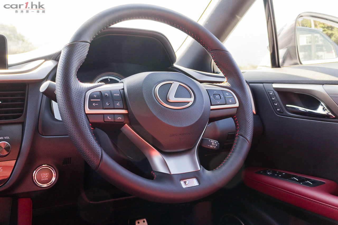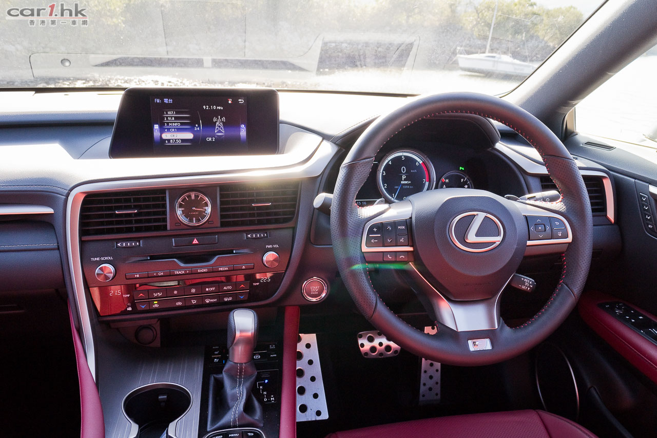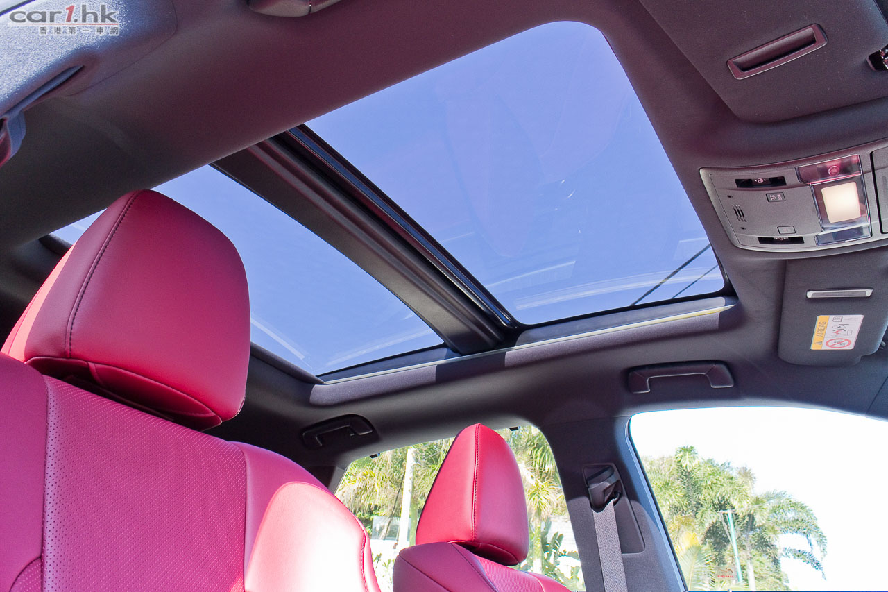 近年 Lexus 車系都是玩起角設計,其設計對用家來說也出現過極端情況,「鍾意的好鍾意」,「唔鍾意的會愈望愈唔鍾意」。不過這的確是 Lexus 的將來設計方向,筆者是很喜歡如此設計。今次試駕的 RX 200t 在外觀有 F Sport 包圍變得更惡外,賣點還有走馬燈的指揮燈,其實這個設計早前 Audi 已有頂級跑車 R8 應用了,不過未能帶入香港,今次 Lexus 成功引入,對車主來說是多一點新鮮感,實際用途筆者覺得潮多於實用,還是那句「鍾意的好鍾意」。RX 今代的空間的確變大了,其中功臣絕對是 2,790mm 的軸距(比上代長 50mm),雖然上代已經很好,但是今代更好。加上車頂大型天窗,將後座空間感進一步提升。前座有暖風車椅、左右獨立恆溫冷氣、全車紅色真皮座椅,舒適性一貫 Lexus 感覺。後座車窗還有窗簾設備,有助日間阻撓陽光。另外,中控台及門板加入 LED 氣氛燈,令到整個車廂在夜間時感覺輕鬆和帶出一份高級車應有的氣氛。