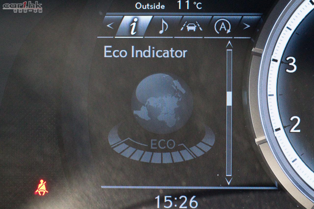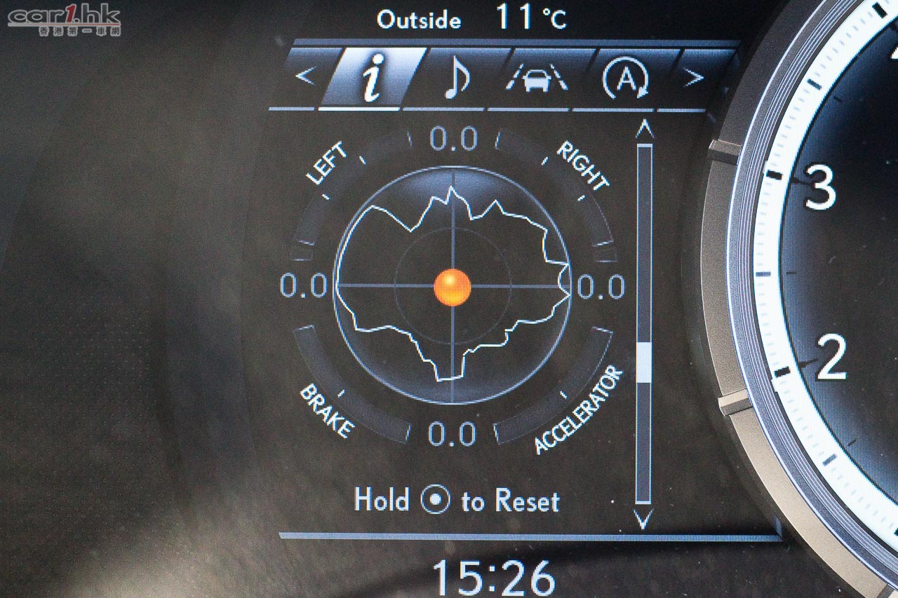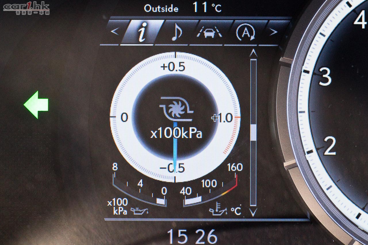 RX 200t 最大賣點可說是它的 2.0 公升直四 Turbo 引擎心臟,透過雙渦輪增壓及 D-4S 直噴技術,最大馬力達到 238 匹和 350 牛皮米扭力。基於起步扭力只需 1,650 轉就可以爆發出來,起步表現十分爽快。雖然車身不算細小,但是加速感也不弱。駕駛席甘的錶板頗為吸引,整體都是以顯示屏來打造出來,可以因應不同駕駛模式,將錶板變身。中圈左方的資訊顯示屏,還可以看到 Turbo 輸出、進油煞車的角度、G Force 狀況、輪胎壓力等等。駕駛模式方面,今次設有 5 個模式,當中的自定 Customize 模式,可調校到動力、懸掛及轉向系統,在日本車中比較小見。常見的 Normal、ECO、Sport S、 Sport S+ 仍然存在。RX 200t 有 Active AWD 四驅系統,因此攻彎時的循迹性很好,乾濕地行走時穩定性亦會提升。F Sport 版油耗在 11.6km/L 水平,以中型運動化旅行車來說,已經是表演不錯。