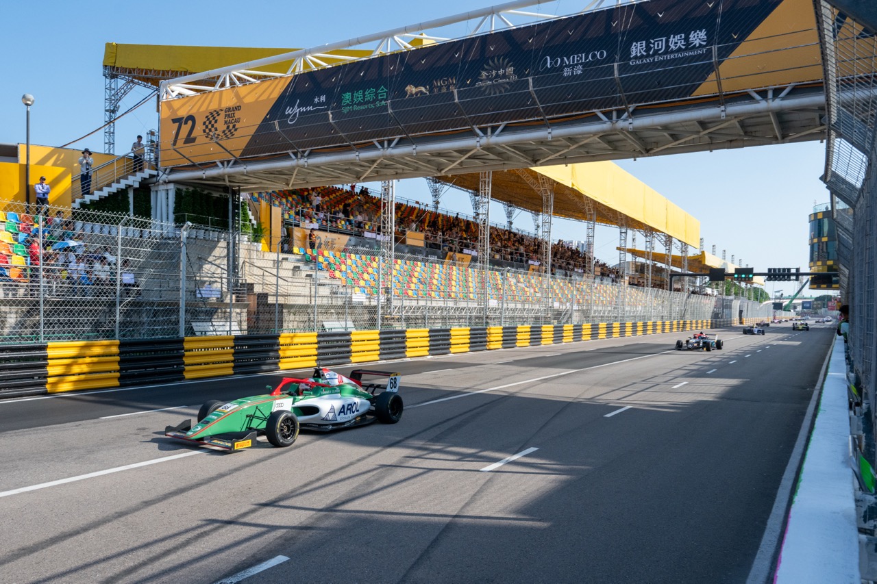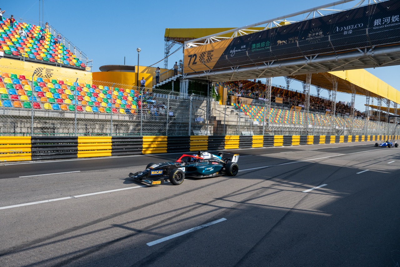 安全車期間的排序變動讓中東F4錦標賽冠軍奧利維利回到第二位,身後是佐藤凜太郎——2001年澳門格蘭披治大賽冠軍、兩屆印地500冠軍佐藤琢磨之子。他在昨日選拔賽因罰時由第三跌至第十一位起步,但今日連番追擊。在魯塞爾重奪領先的同一圈,他亦在文華東方彎超越班素(Ary Bansal),搶回頒獎台最後一席。