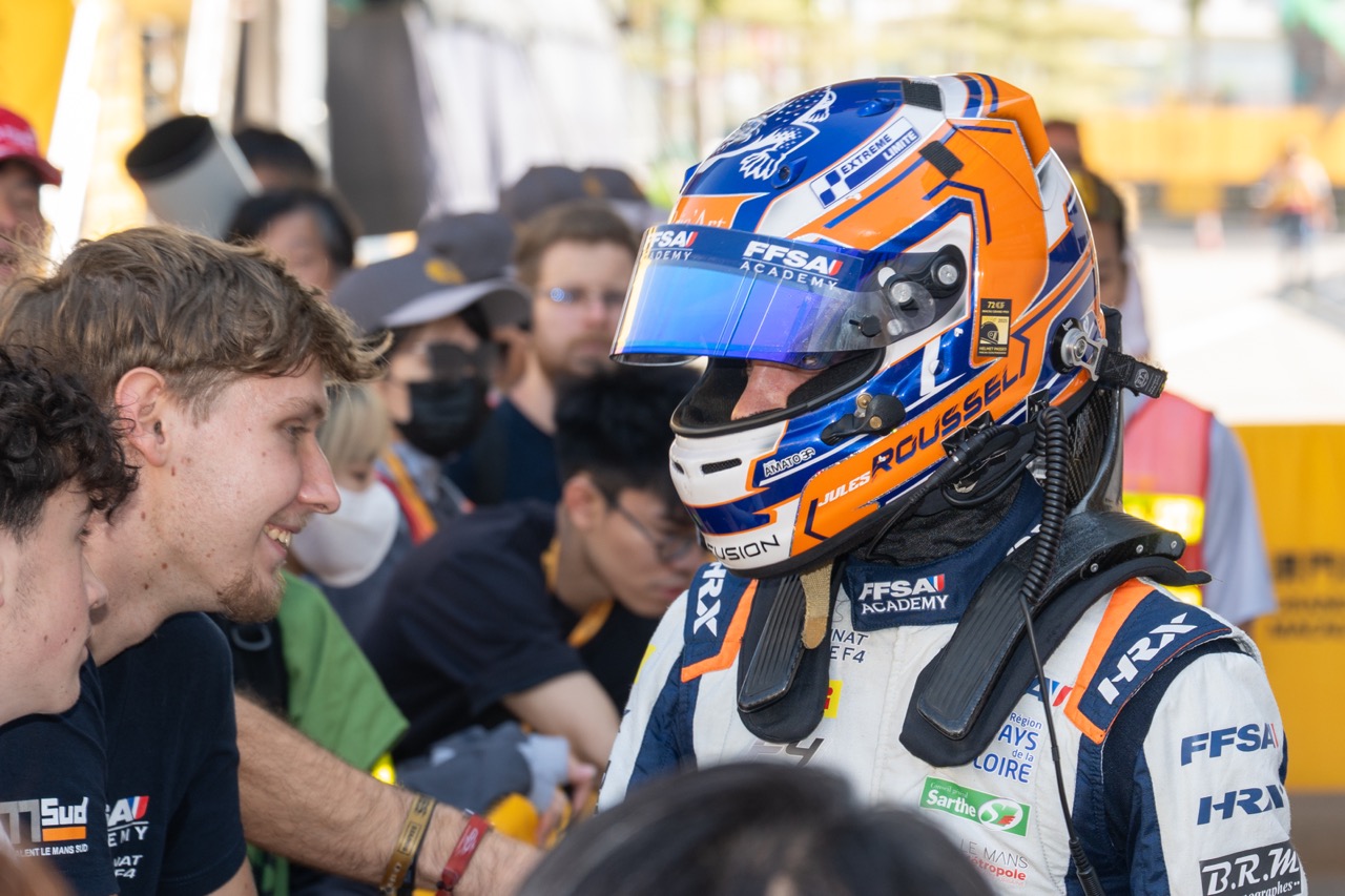這位年僅十九歲、法國四級方程式錦標賽年度季軍的新秀,在今場比賽始終與同胞加賀迪(Rayan Caretti)糾纏不休,兩人幾乎全程緊扣。直至第八圈,加賀迪在劏狗彎意外撞欄退場,比賽餘下兩圈被安全車帶領,戲劇性畫面為冠軍之爭添上最後一筆。