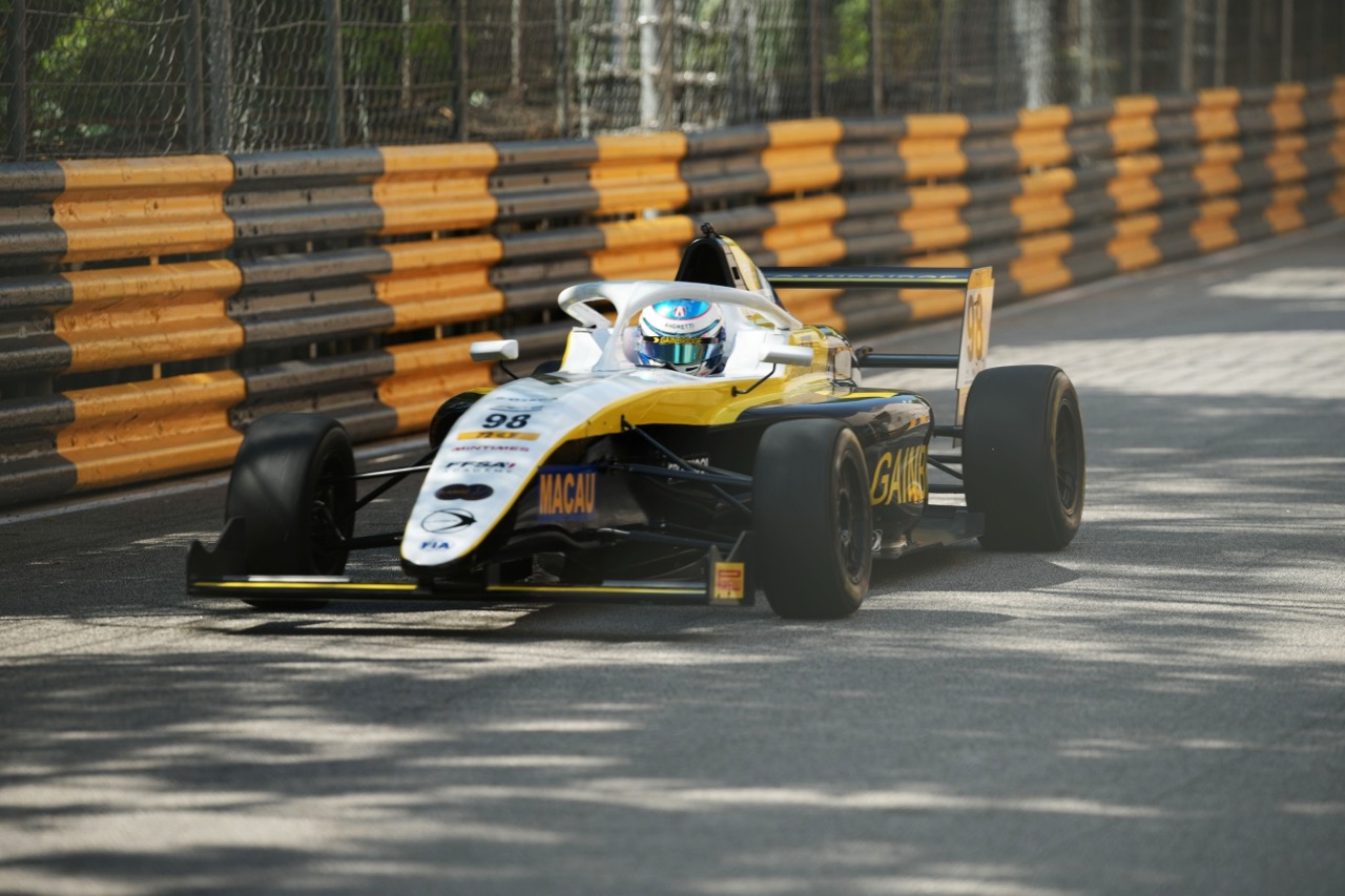 今季F4方程式中國錦標賽總冠軍張石墨,在比賽中一直跟魯塞爾作纏鬥,可是他成為了麥洛連撞車意外中的受害者,車輛右前方受損,由第四位跌至第八,他的原來位置則由加賀迪 (Rayan Caretti) 補上。這名法國車手於第五圈成功在葡京彎超越班素 (Aryaman Bansal)。來自印度的班素是今年GB4賽事盟主,今仗得第五名衝線,以些微差距領前香港車手陳譽齊和韓國車手李奎浩。從第四位加賀迪至第七位李奎浩之間,衝線時間僅相差0.630秒。