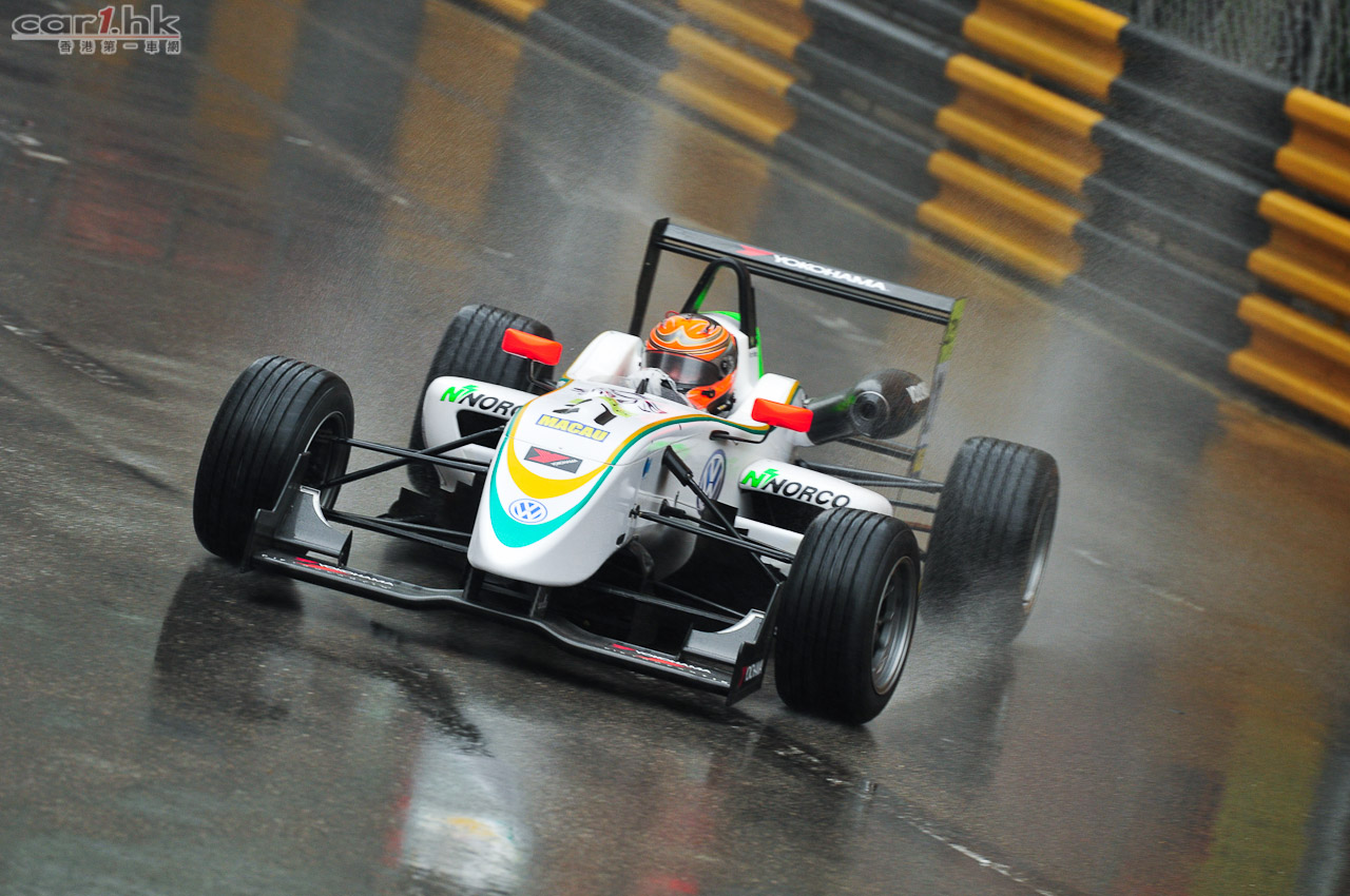 Carlin車手拿斯亞說:「濕滑的東望洋賽道是賽車的最大挑戰。排位賽前 10 分鐘賽道狀況良好,但雨勢越來越大,我們覺得返回維修站是更佳選擇。」