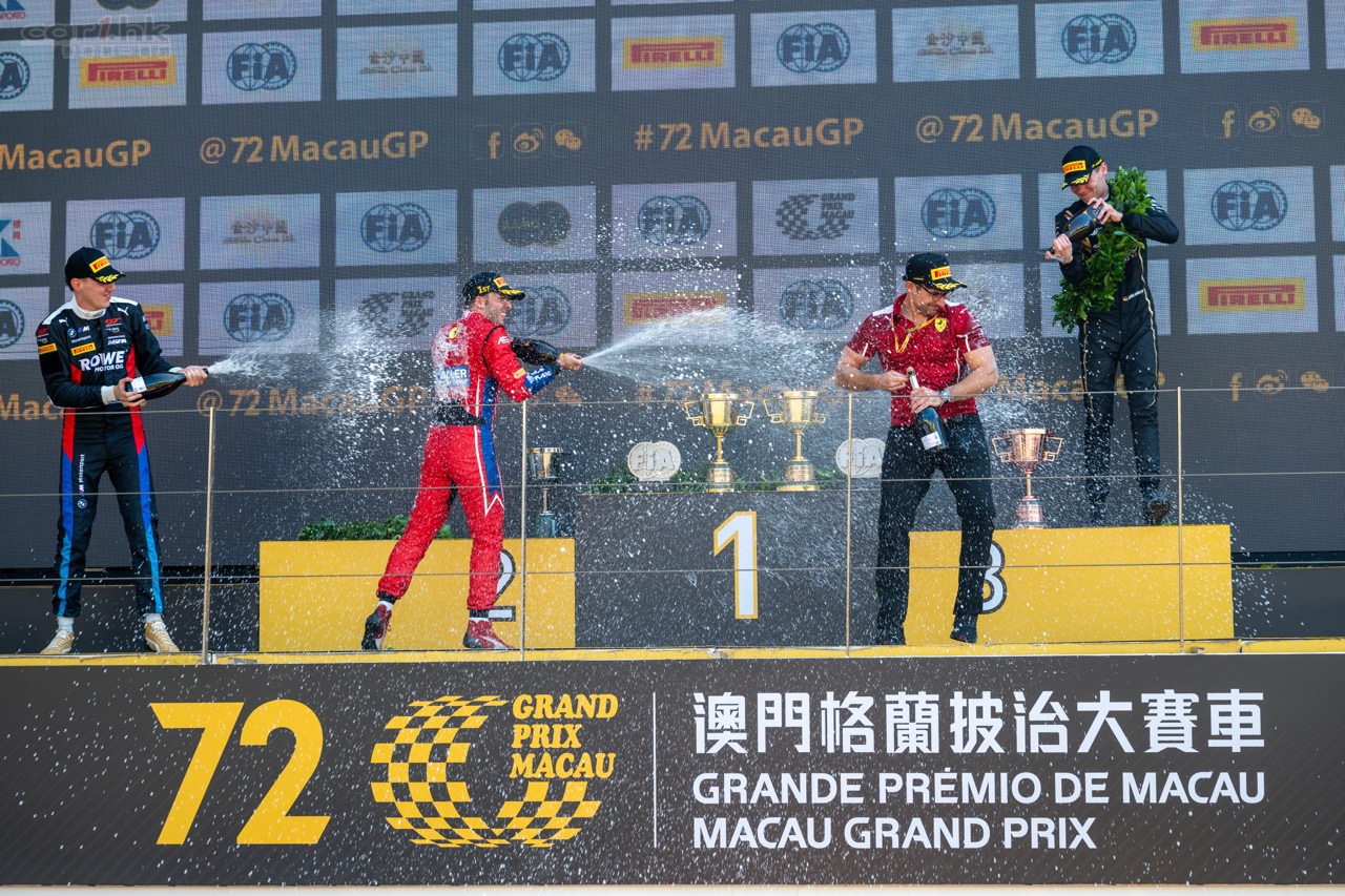 法拉利車手傅奧(Antonio Fuoco)在週日強勢稱王,毫無懸念地奪下澳門 GT 盃,國際汽聯 GT 世界盃冠軍。整場比賽他幾乎未受任何壓力,從起步至終點都掌握主導權,為自己及品牌帶來在此項大賽的首個冠軍。