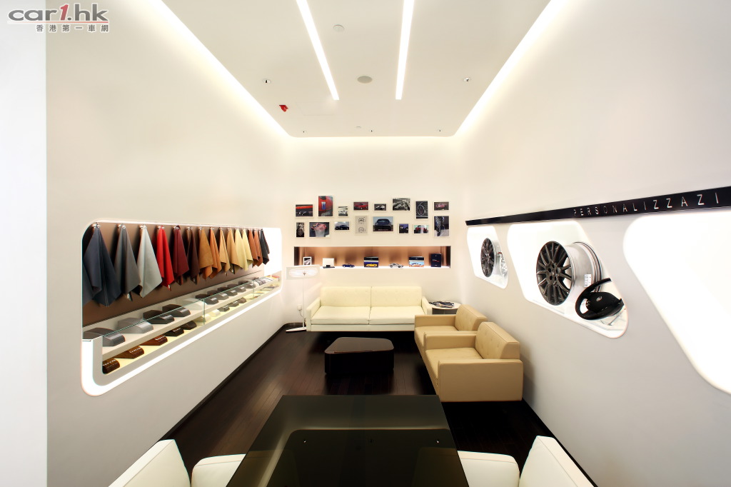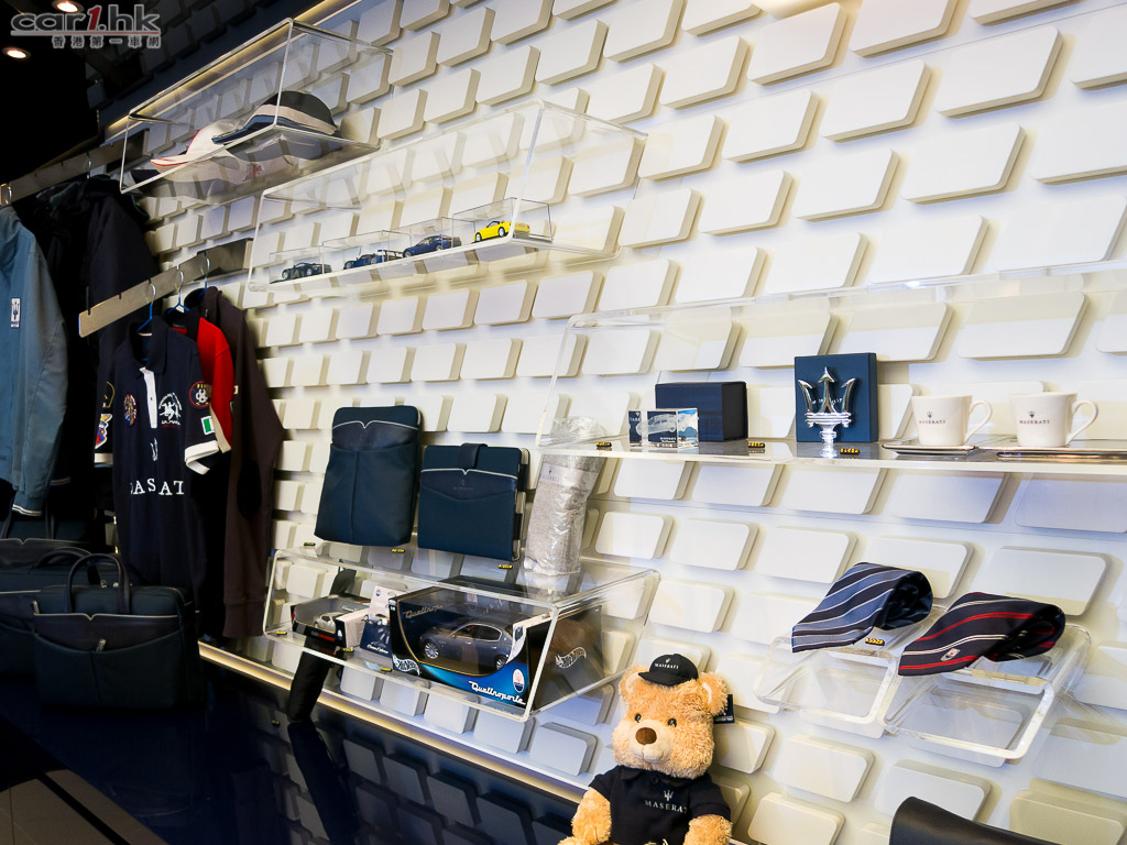 座落黃金商業地段的灣仔瑪莎拉蒂陳列室擴建後,總面積佔地超過3,400平方呎,陳列室更見寬敞舒適及設施齊備。為配合品牌未來的發展,陳列室現可同時展出更多瑪莎拉蒂旗下不同車款,讓顧客可更容易了解各個車型並挑選心頭好。室內設計簡潔利落,全新設計的客戶專區擺放了各式汽車配件樣本,包括皮革面料及色板等等,配合特設的電腦模擬程式,多角度呈現顧客喜愛的配搭,全面打造獨一無二的瑪莎拉蒂。喜愛瑪莎拉蒂精品的顧客,更可於精品區盡情選購更多及款式更齊備的精品。