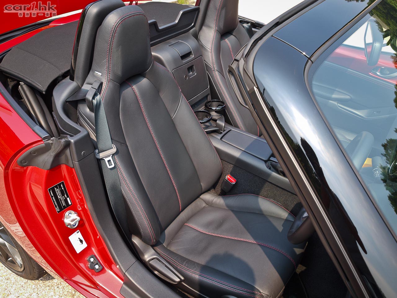 MX-5 馳名的易用手動軟篷,新車沒有兩樣,一個「T」柄,解扣… 一扭… 便可將軟篷推開,坐著也可自己搞掂,無需女伴幫手。