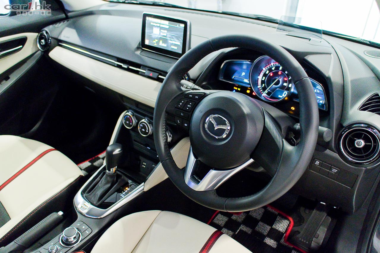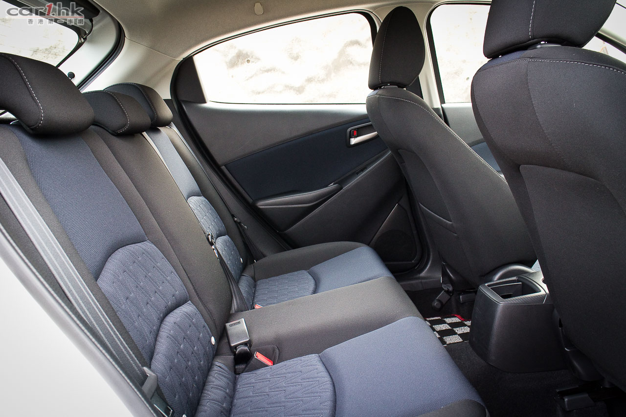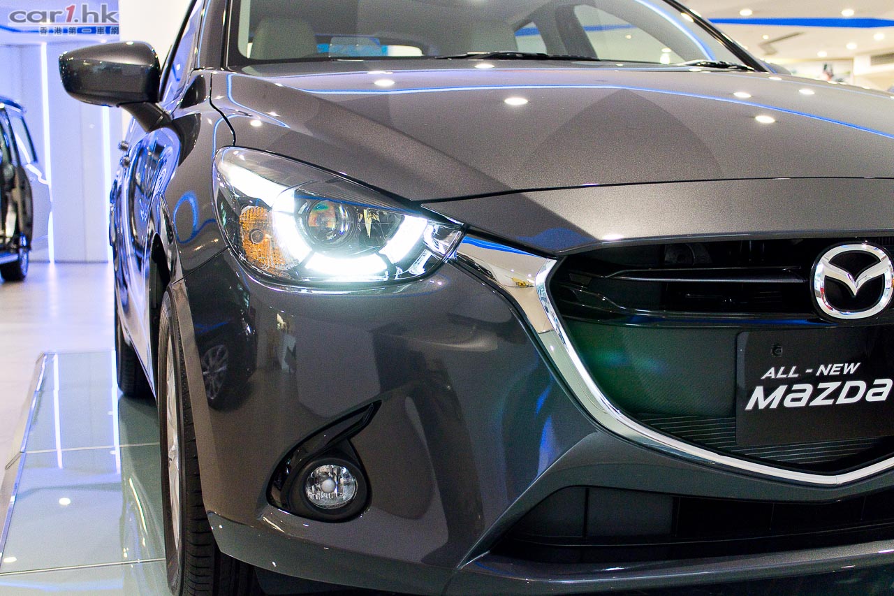 Mazda2 在本地入門小車來說,相信是暫時最有型的一部,尤其是 R-Grade 版,在車頭燈的設計、富層次的大型鬼面罩都是其他小車來得搶眼,其運動感都強烈得多,相信其賣相滿足到近年買車的車主。其車身繼續以魂動 KOKO SOUL OF MOTION 設計概念去打造,流線感強,完全擺脫了舊款保守形象。全新 Mazda2 的 A 柱後移了 80mm,前輪前了 80mm,座位的設計亦比上一代改良了,坐在駕駛席時腳部的伸展改善了,椅背亦比過往靠後一點,在睇位、行車時的穩定性和駕駛者的舒適性都同時獲得改善。頂級 R-Grade 版配置非常先進,駕駛艙中央找到多媒體介面中央顯示屏,同時備有 Mazda 的多媒體操控鍵 (Commander Control),駕駛席前方是投射式行車資訊顯示屏 (Active Driving Display),即是大眾所講的 Head up display,多功能皮軚環連藍牙免提及音響操控鍵亦是這個版本的標準配置。其實配置方面,6 揚聲器中控台音響系統、自動恆溫空調系統、智能免匙系統、轉檔撥片、前側及窗簾式安全氣袋、倒車視象系統、原廠皮座椅等,都是這個版本的標準配置,所以這個版本是最抵買。如果你喜歡紅色車身的話,Mazda2 還有 Soul Red Mazda 專屬形象車身顏色,只需添加 $6,000 即可(連稅)。