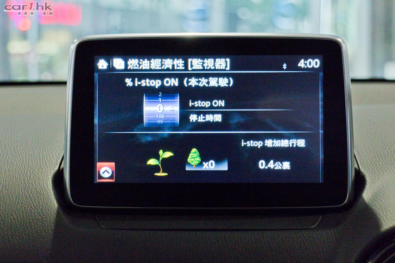 試架車是汽油引擎,1,299cc 直四 SKYCTIV-G 型號,最大馬力 92 匹和 120 牛頓米扭力,由於是採用 12.0 高壓縮比,所以小引擎來說它的輸出算不俗。波箱方面使用傳統式設計,6 前速配 SKYACTIV-Drive 波箱技術,跟一般日本小車使用 CVT 無段變速波箱來比的話,Mazda2 行車加速、轉擋反應明顯活潑得多,尤其在突然加速時,其加速性能比其他日本小車有明顯分別。車仔細細,在堅硬的車架配合下,其走彎的穩定性比預期的好,加上轉向比例提升,令到這部車仔表現得靈活起來。值得留意的是,油門、煞車腳踏部份都向右移動了 20mm,令駕駛者的腳部不需過份屈曲,已經能夠輕鬆駕駛,在長時間駕駛時更加舒適。油耗方面比上代進步 20%,配合 i-stop 引擎怠速自動熄火系統只需 24.7km/L。