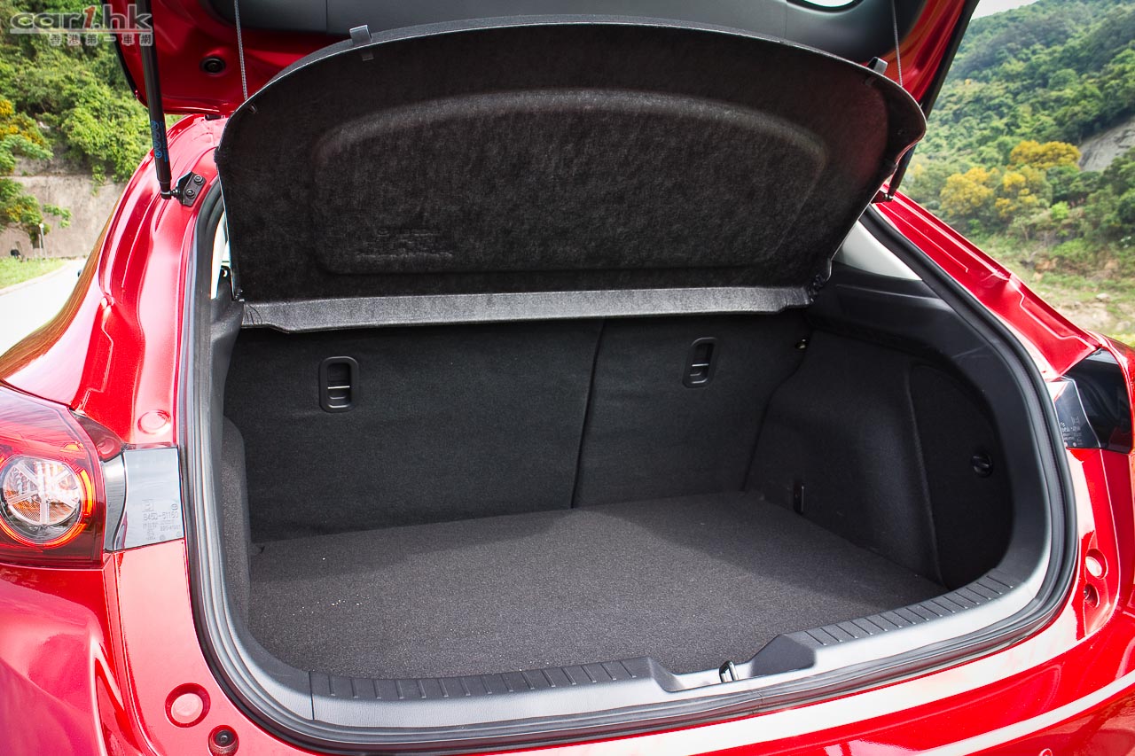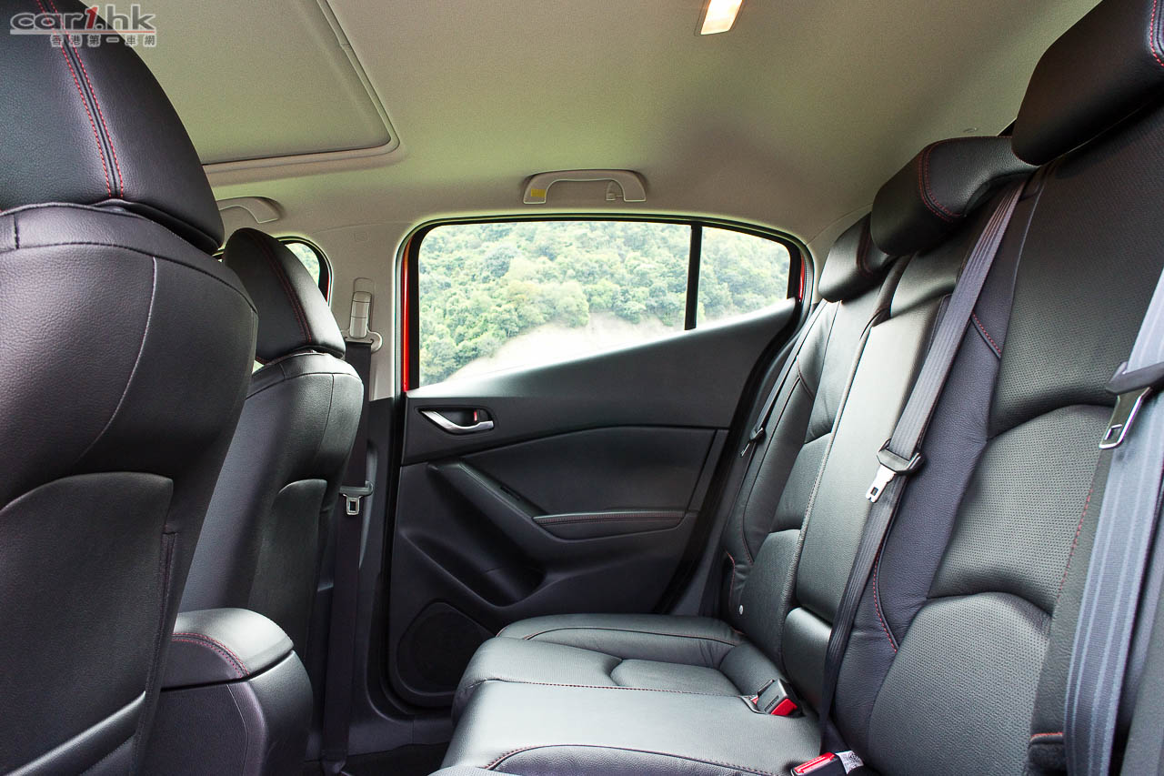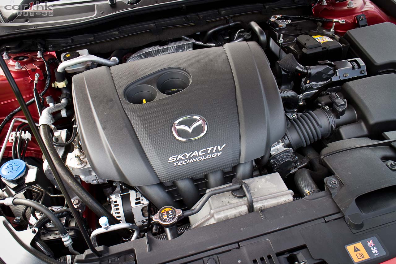 Mazda3 SKYACTIV-G 2.0 使用輸出大一點的 1,998cc 直四 SKYACTIV-G 引擎,最大馬力 165 匹和 210 牛頓米扭力。為什麼可以做到這樣的動力效果,因為這副引擎使用 14.0:1 超高壓縮比,再加上新世代直噴燃油系統,擺脫過往兩公升引擎輸出風格。波箱亦是 SKYACTIV-Drive 六前速半自動波箱,加速反應合理與這架車相當匹配,與此同時,軚盤後方設有轉檔撥片,玩樂性提升,而對購買者來說這些設備在日本揭背車來說是很足料。起步爆炸力平順,整體反應算不錯,軚感沒有大多數日系車般過份輕,快跑山路時感到車架實在,四輪的抓地力貼服。油耗方面,官方數字為 5.9L/100km,如果再打七折來算一算,其實頗接近香港大多數車主日常城市開車的油耗。如果計市面上同級日系揭背車來說,Mazda3 五門版好玩、好開的程度絕對是頭三位之內。
