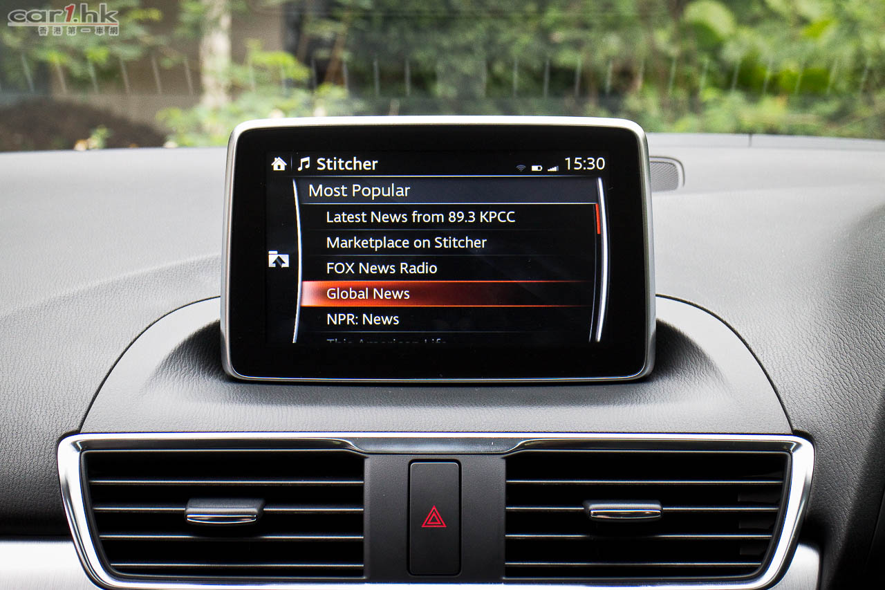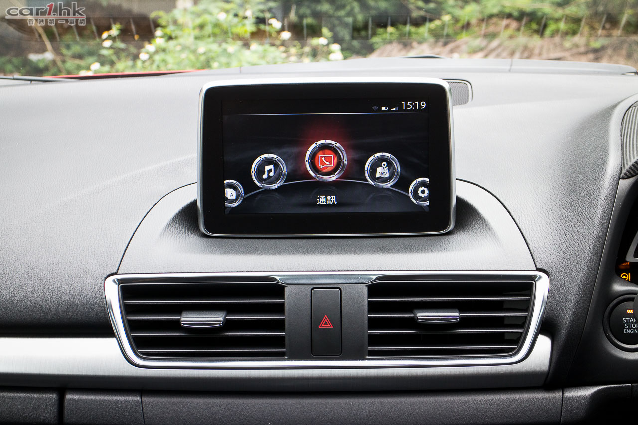 在同類 19、20 萬的初級房車中,樣靚自然更易引人留意,而新 Mazda3 更有兩項新設備不但是同級少有,更是 Mazda 的首次,就是車廂內設有廠方稱為 HMI(Human Machine Interface)的滑鼠控制介面系統連 7 吋中控台彩色 touch screen 屏幕,另一項是 HID(Head-up Display)投射儀錶。