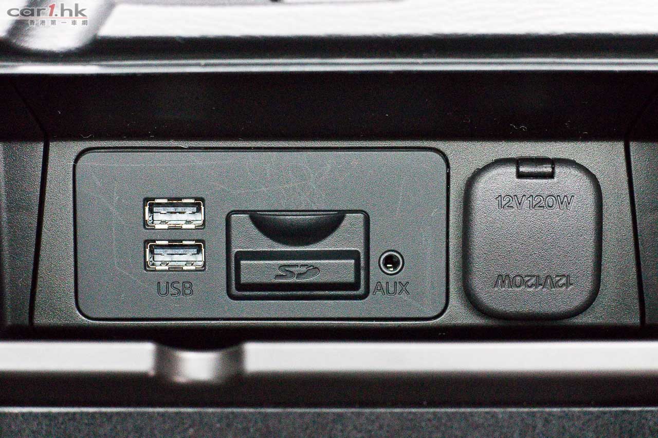 前排中央手枕的雜物盒內設有兩個 USB 插頭、12V 電源輸出,衛星導航系統可憑另購的 SD card 啟動,屏幕會顯示地圖和引路指示。