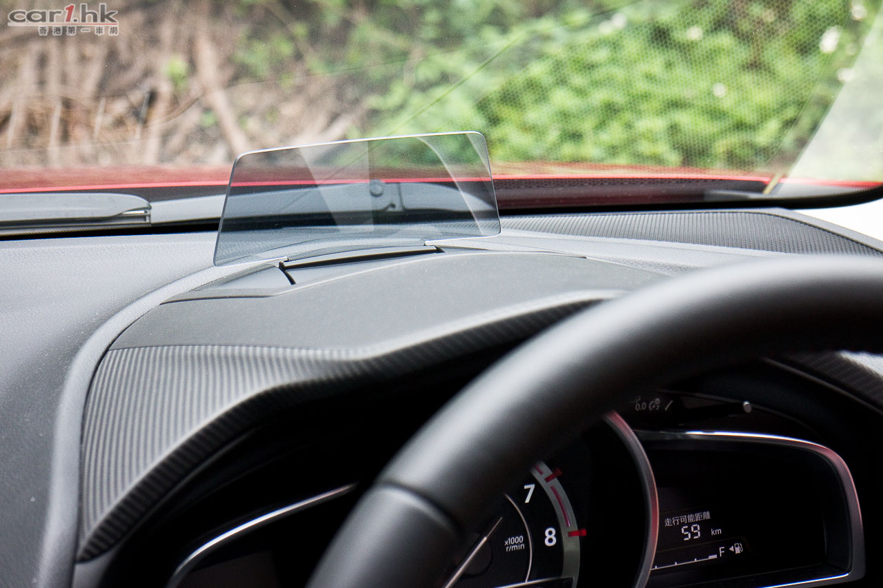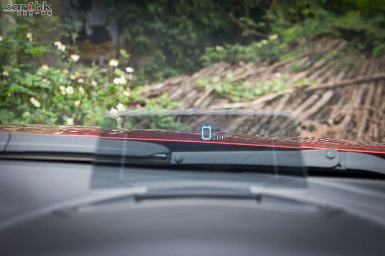HID 投射儀錶有一塊長方形透明膠片,顯示單一的車速,沒有轉數錶,投射高低可由 HMI 滑鼠經屏幕控制;但膠片從撻車開始便一直豎著,不能縮低,嫌它阻礙視線便沒有法子了。