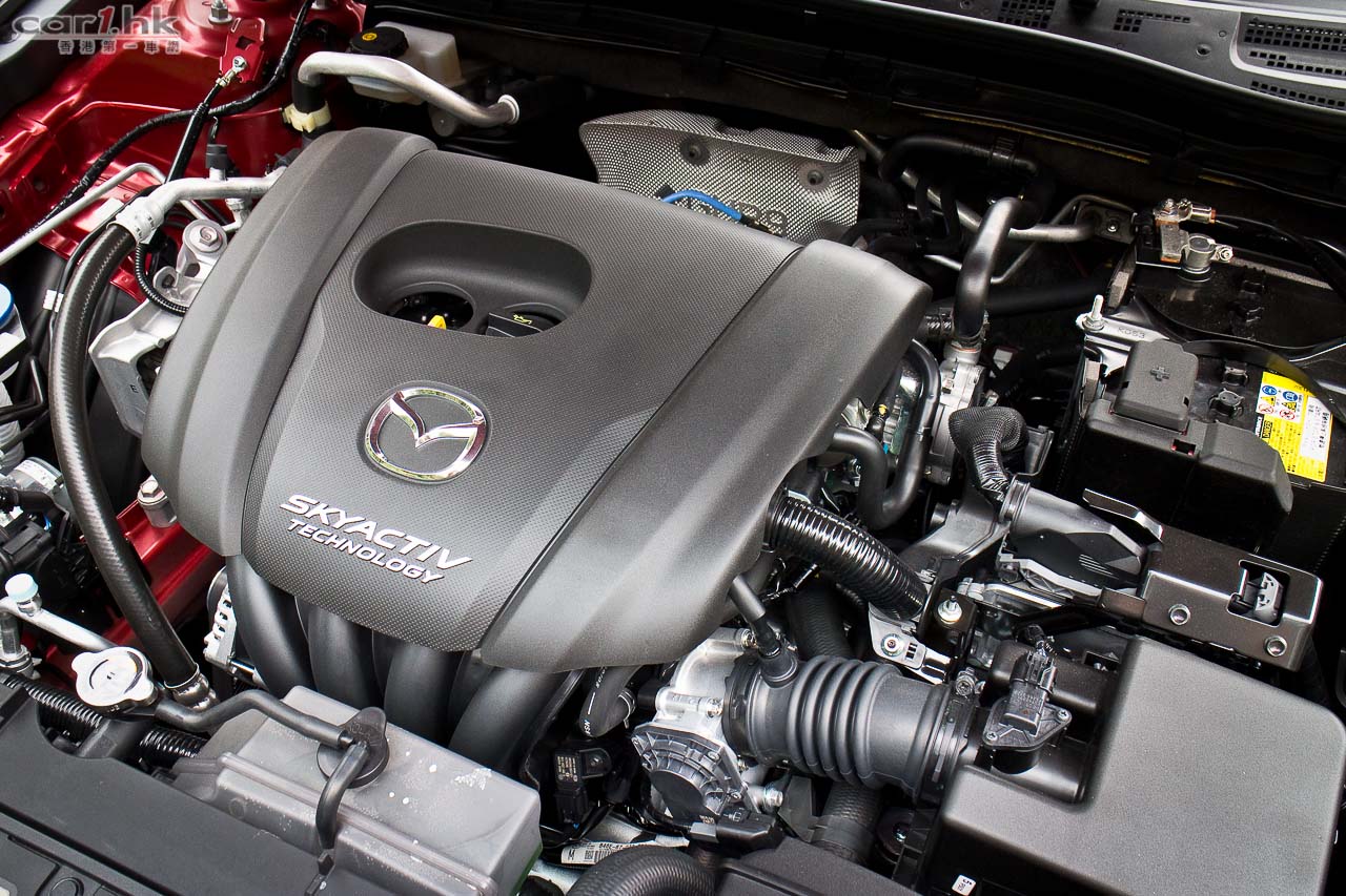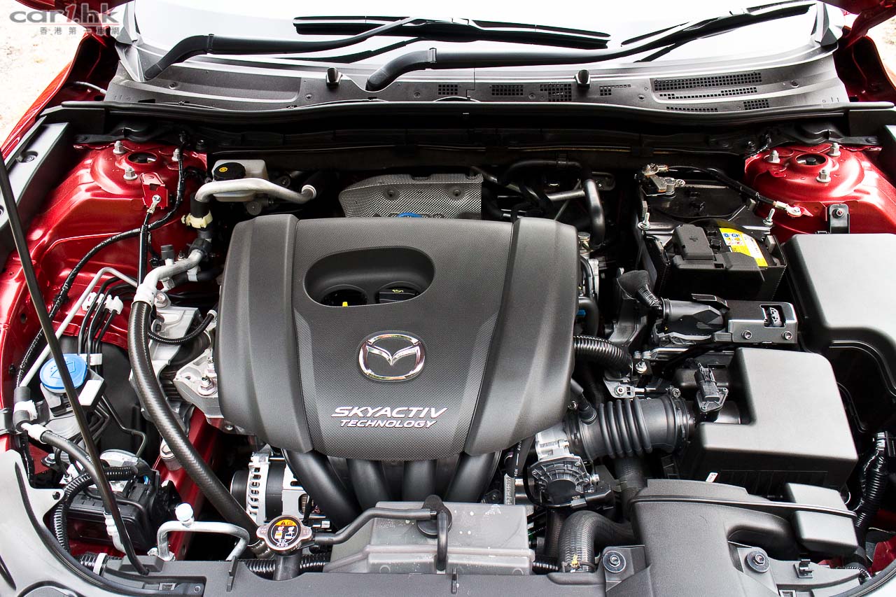 新 Mazda3 原廠有 hybrid 和 diesel 型號,電油引擎有 165 匹 2.0 升 4 汽缸引擎的 SKYACTIV-G 2.0,和測試的這部 SKYACTIV-G 1.5,用全新的 1.5 升 4 汽缸引擎,輸出有 120 匹和 150 牛頓米,14:1 的特高壓縮比令扭力特高,以及比前慳油 26%,平衡耗油量是 17.5km/L。