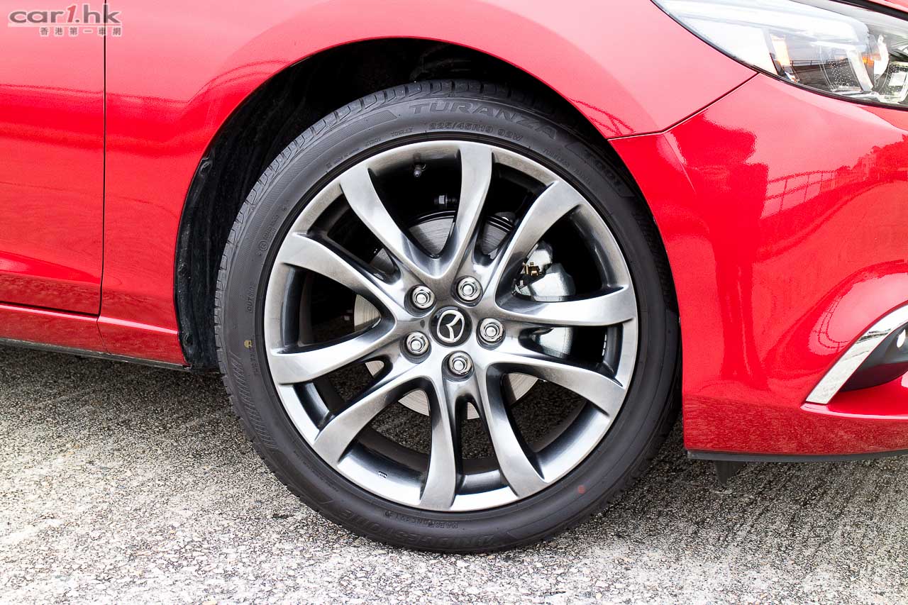 炭灰色高光塗層的 19 吋鋁合金輪圈是 Mazda6 IPM 標準配置。