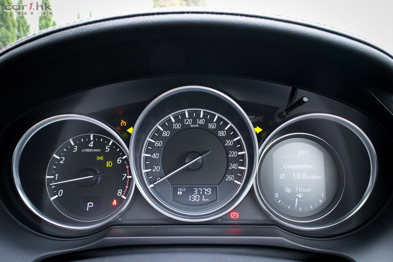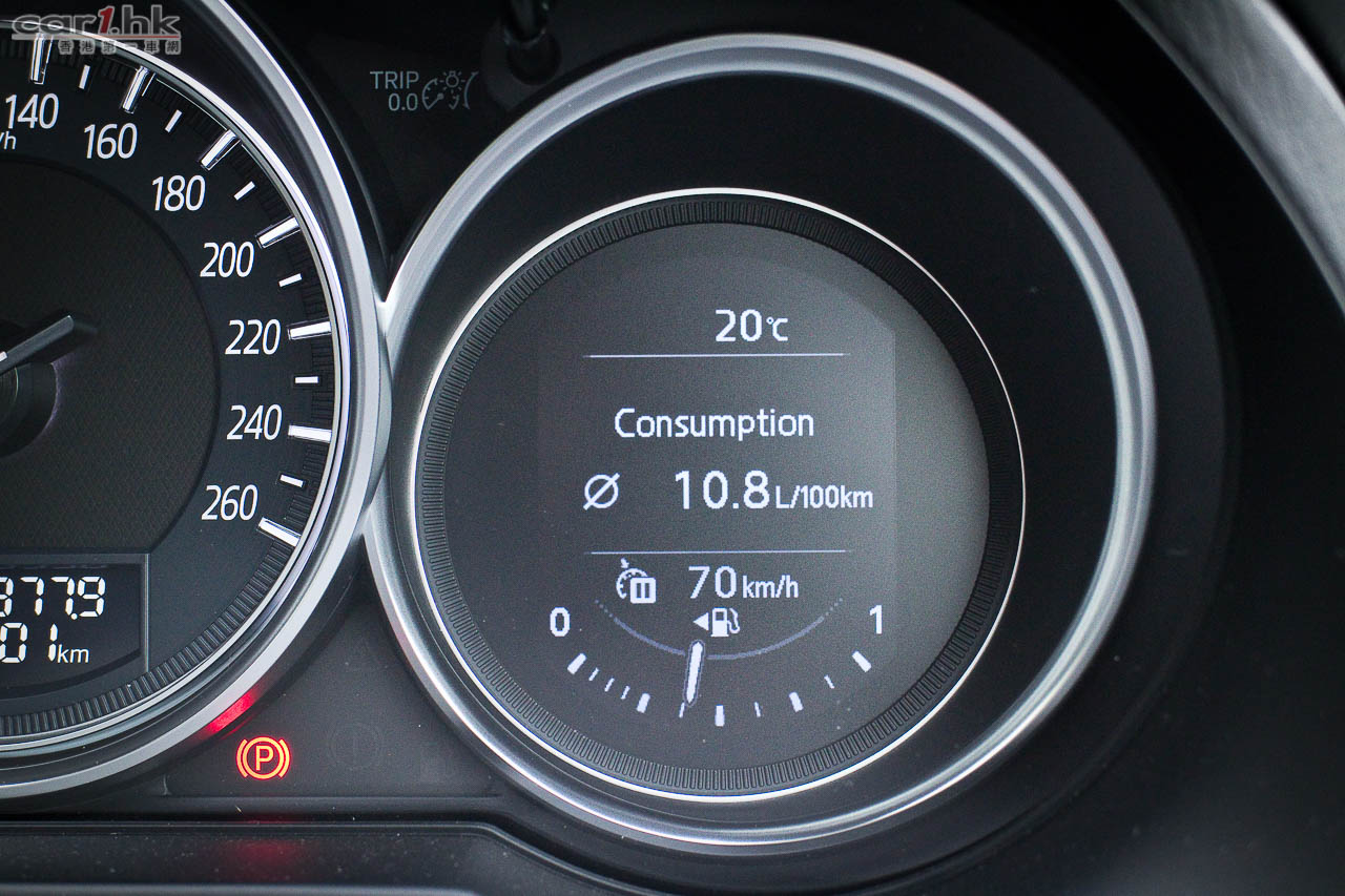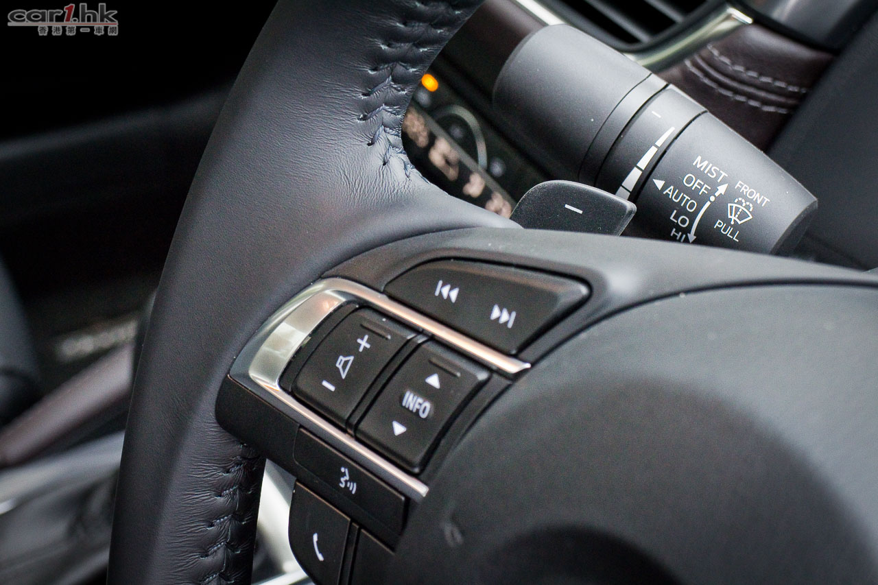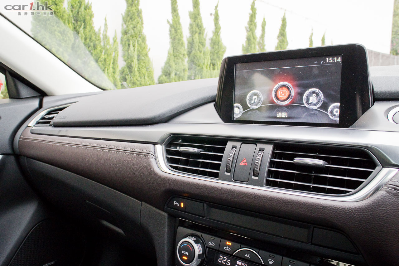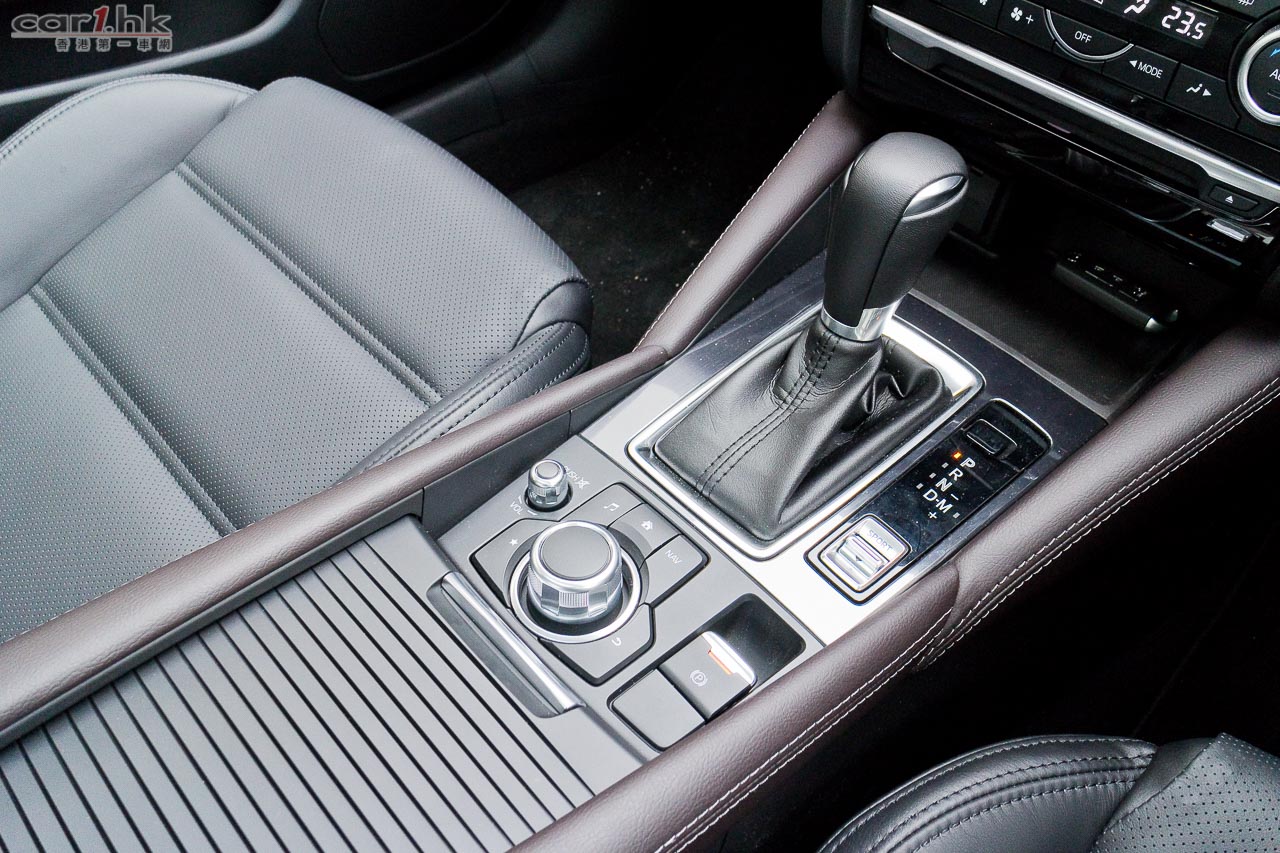 由於車架底盤未有作出改動,車廂內的空間感跟過往 Mazda6 版本是沒有分別。要令駕駛者和乘客感到不同,就要在用料、配置上著手了。跟過往 Mazda6 相比,今代是豪華了,用料細緻了。全車皮座椅外,儀錶台、裝飾面板、後控制台和門邊手枕等,均採用雙線縫製皮革裝飾,豪華感直線上升。中控台上的 7 吋正是最新 Mazda Connect 系統,操控跟 Mazda3 一樣,轉盤加快捷鍵(官方名稱:HMI多媒體操控鍵),使用來起來簡單易明。過往令到駕駛席不名美觀的機械式手掣拉桿,今次終於由電子泊車手掣取代,在進入 D 波進油時,電子泊車手掣就會自動鬆開,令駕駛時便捷得多。新增電子泊車手掣外,還有 SPORT 模式按鍵,可以在普通和運動模式之間設換,迎合不同駕駛環境需要。進入這部 Mazda6 IPM 後,就覺得它是 Mazda3 的延續,的確給人耳目一新,當中駕駛席的 Head-up display 車速顯示器亦是由 Mazda3 帶過來。其實 Mazda 是一個很特別的車廠,歐洲大廠都是將最新最好的設備先放在頂級車,往後日子才慢慢下放到較低級車系,而 Mazda 偏偏在 Mazda3 入門房車放盡所有設備,再慢慢伸展到其他車系(如 Mazda2 和今次的 Mazda6),是比較特別的手法。Mazda6 前座椅背再沒有使用傳統 S 彈簧,改用 Pullmaflex 背墊,僅令椅背更貼身,亦可增強對背部的承托力。座墊則採用高吸震力聚氨酯物料,亦有助緩減震盪。後座座墊亦採用與前座相同的高吸震力聚氨酯物料,可有效緩減行駛粗糙路面時所產生的震盪,例如鋪裝欠佳的瀝青路面等,減少傳送至乘客的震盪。中型房車隔音性往往被車主看重,Mazda6 在這方面大力著手,大量採用吸收噪音的物料,亦增加了密封位置,擴大車身側樑下的擋石板和車底護板,以提升座艙的寧靜感,實際試駕時除非有大型車輛或巴士駛過走近,才聽到明顯外來嘈音,一般行車時,車廂內算很寧靜。而在起步或上斜時引擎高轉發出的聲響仍會聽到,這亦在所難免,現有的隔音狀況和這個級數的中型房車來說,算是不錯。