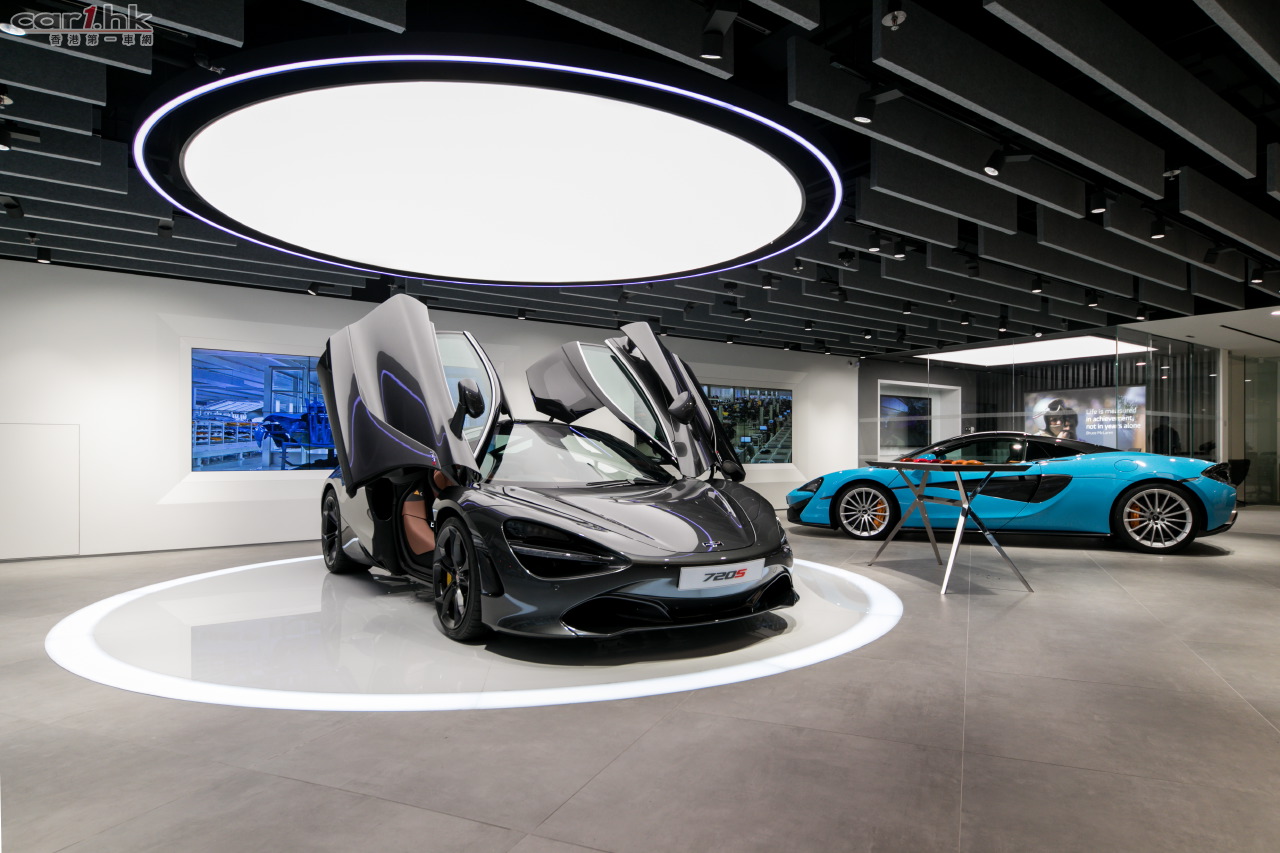 設計前衛的全新陳列室佔地5,000平方呎,簡潔明亮的室內裝潢讓客人一踏進便可感受到低調奢華的氛圍。陳列室左側為展示空間,展示矚目的最新型號跑車,客人可近距離欣賞跑車的別緻設計,一嚐速度帶來的快感。展示空間中更設置兩個大型螢幕,客人可窺探Mclaren工程師於英國沃金技術中心内專注創造每架車輛的現場。走到陳列室後方是跑車訂製區,亦是客人發揮想像力的地方,互動式屏幕為客人提供琳瑯滿目的選項,McLaren的專業團隊會帶領買家完成創作過程,確保每個細節都根據要求進行個性化定制,從獨特的外觀、車廂顏色,以至車內設計和鑲嵌,客人都可以根據個人喜好打造獨一無二的McLaren跑車。陳列室的右方設有四個電子相框,展示著McLaren在賽車史上的輝煌時刻,以及品牌跑車在熙來攘往的香港鬧市穿梭的影像,客人可在陳列室內的吧檯一邊放鬆和享受四周環境,一邊了解McLaren的經典賽車歷史。
