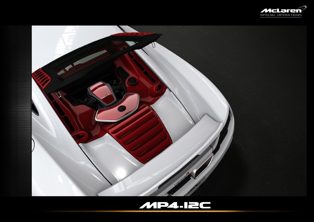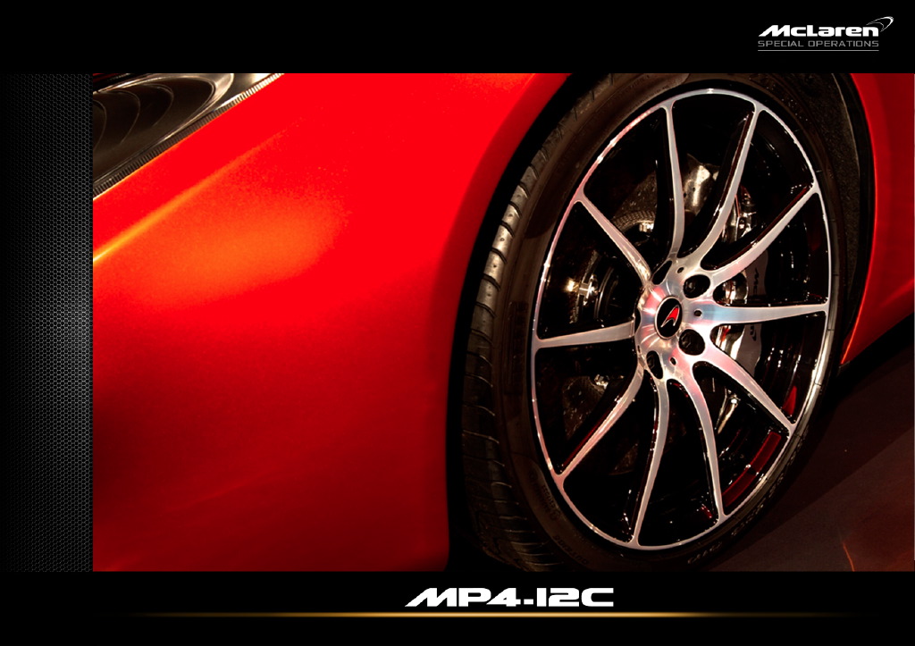 這款黑白雙色配搭的 12C 為香港首款 MSO 特別訂製的型號,一方面能展示 MSO 部門在生產 技術上的靈活變通,同時亦為客戶提供了 12C 在配置及顏色搭配上的良好範本。客戶可通過 MSO 部門隨意發揮自己的想像力及個人喜好,打造一部屬於自己獨有的 McLaren 12C。