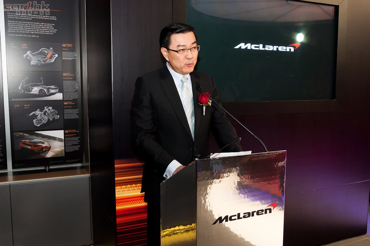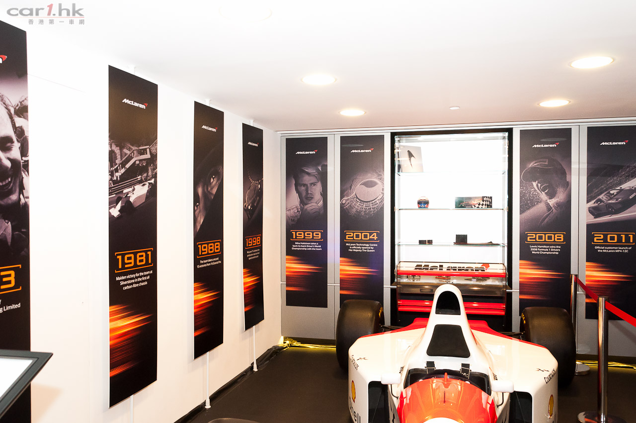 McLaren(麥拿倫)的 F1 賽車聞名世界,平均每參加 4 場大獎賽,就能得到 1 場勝利。近年 McLaren 希望藉以經驗豐富的 F1 技術,在私家車市場大展雄圖。2011 年 4 月時,McLaren 首部自行研發的純正英倫血統 MP4-12C 已經抵達香港,當時引起傳媒的熱烈期待。於 2011 年 6 月時 McLaren 全球首間陳列室在倫敦開幕;相隔約 8 個月,亞洲首間陳室列坐落與英國擁有極深淵緣的香港。位於灣仔胡忠大廈的 McLaren 陳列室於 3 月 9 日正式開幕,除了展出 MP4-12C 外,更有車壇「拼命三郎」之稱的冼拿 F1 冠軍戰車 – MP4/8 作限時一年展覽。